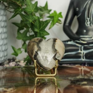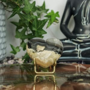 Presentatie: Deze steen is voor de foto geplaatst op een standaard voor edelstenen bollen (ook geschikt voor edelstenen in eivorm) ter illustratie. De houder wordt niet standaard meegeleverd, maar is apart verkrijgbaar in de webshop. Bekijk edelsteenhouders ›