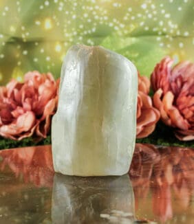 Verzorging: Maansteen is heel geschikt om op te laden in het (volle) maanlicht maar omdat het een broze steen is kunnen water en chemicaliën beter vermeden worden. De steen is ook erg zacht en kwetsbaar en kan makkelijk krassen. Lees hier.