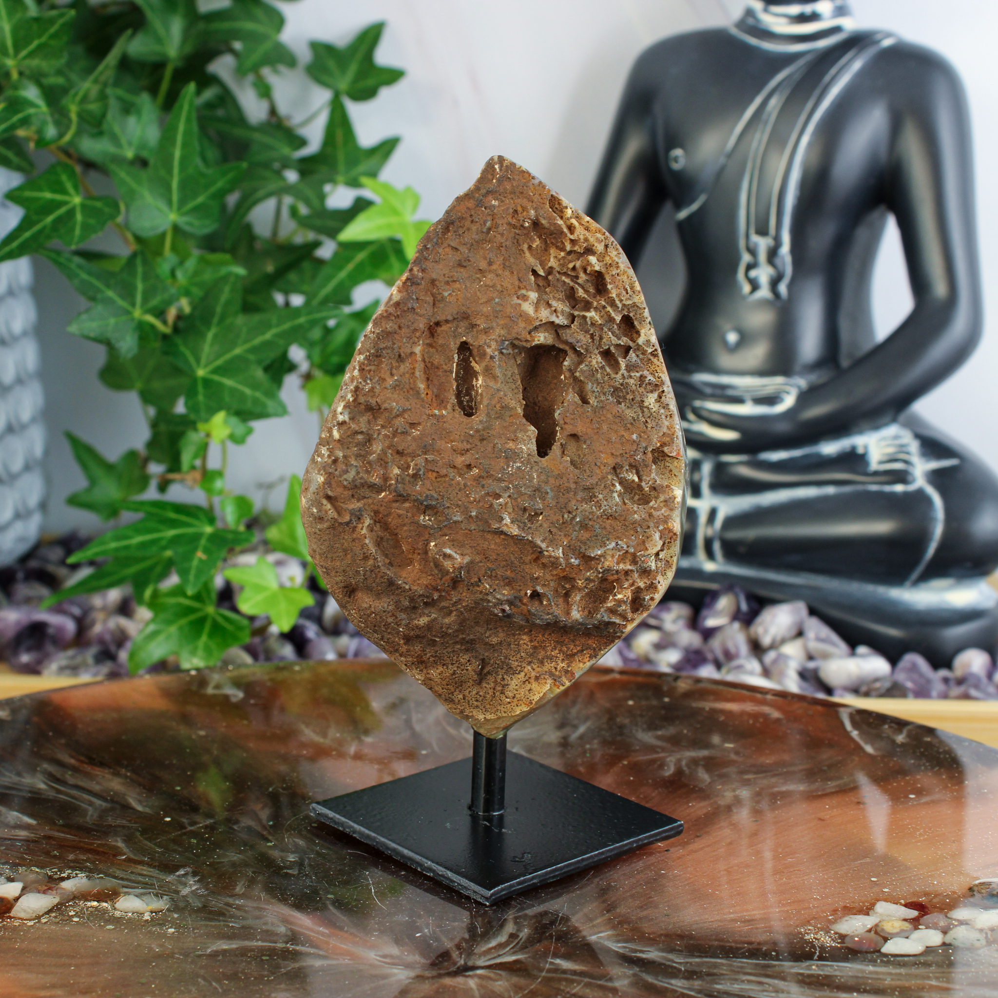 Elke agaat heeft een eigen vorm, tekening en structuur. Geen enkel stuk is hetzelfde, waardoor je altijd een uniek natuurproduct in huis haalt. De standaard laat de steen stevig staan en zorgt voor een mooie presentatie, zodat de natuurlijke details goed zichtbaar zijn.