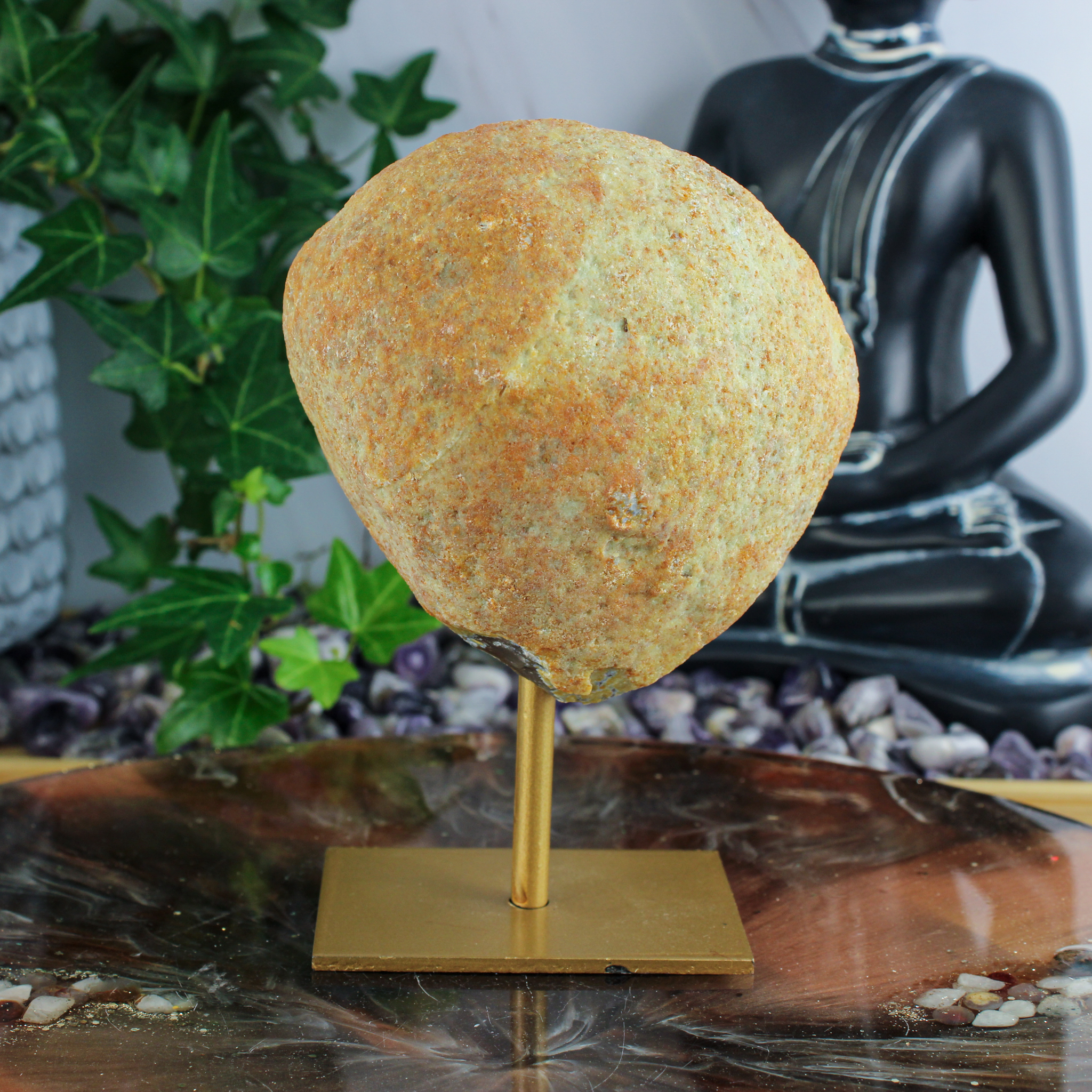 Dankzij haar natuurlijke karakter past deze agaat in veel interieurs zonder te overheersen. Zo haal je met deze agaat op standaard een bijzonder stukje natuur in huis dat rust, balans en een warme sfeer uitstraalt.