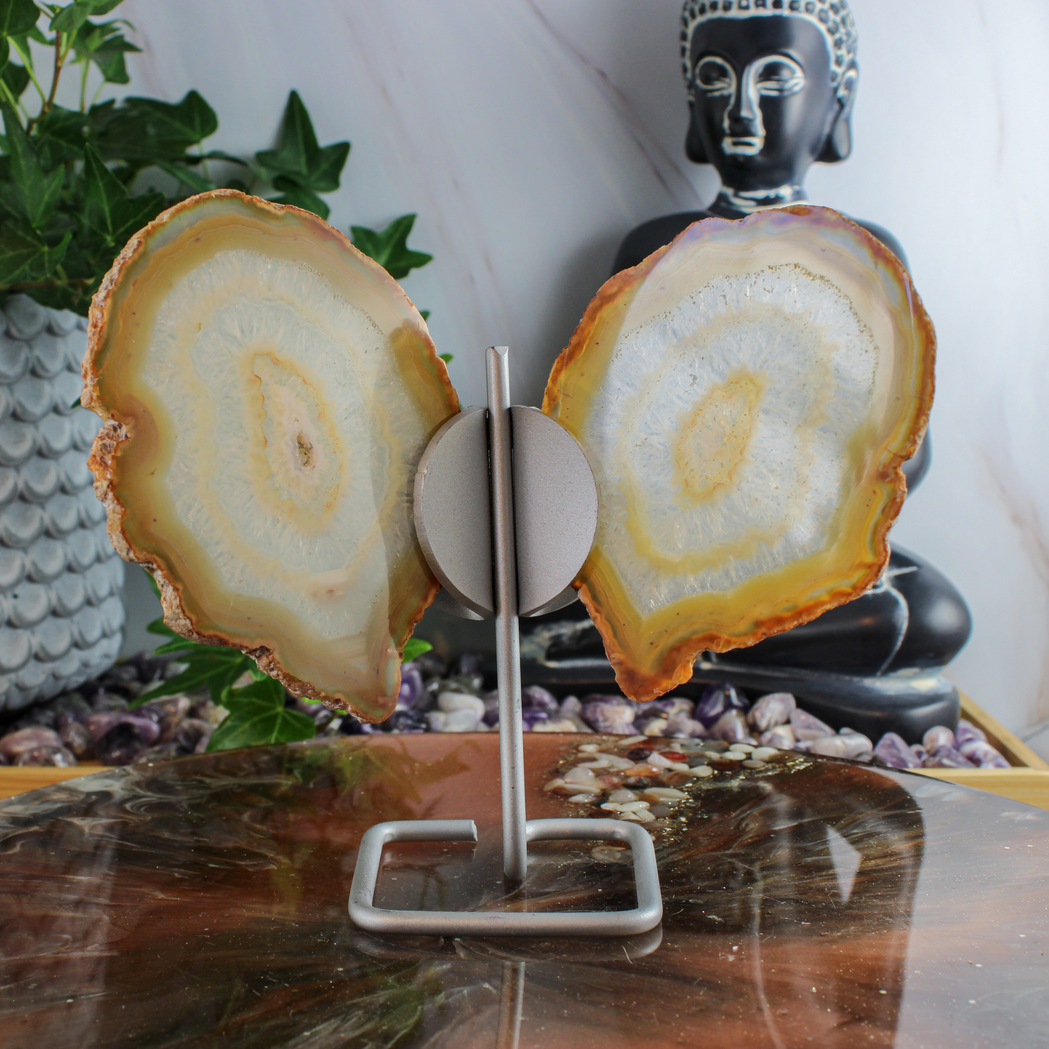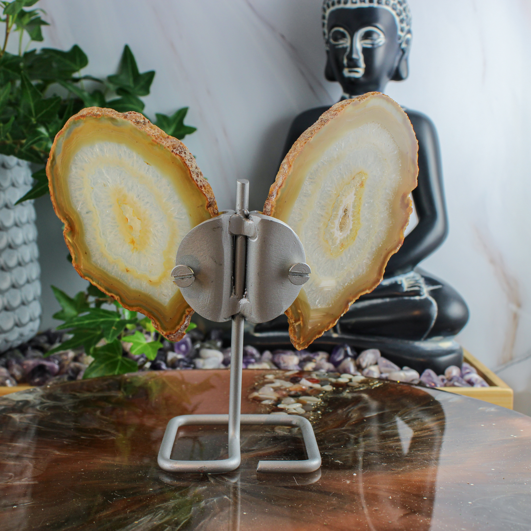 Productomschrijving – Agaat Vlinder op Standaard
