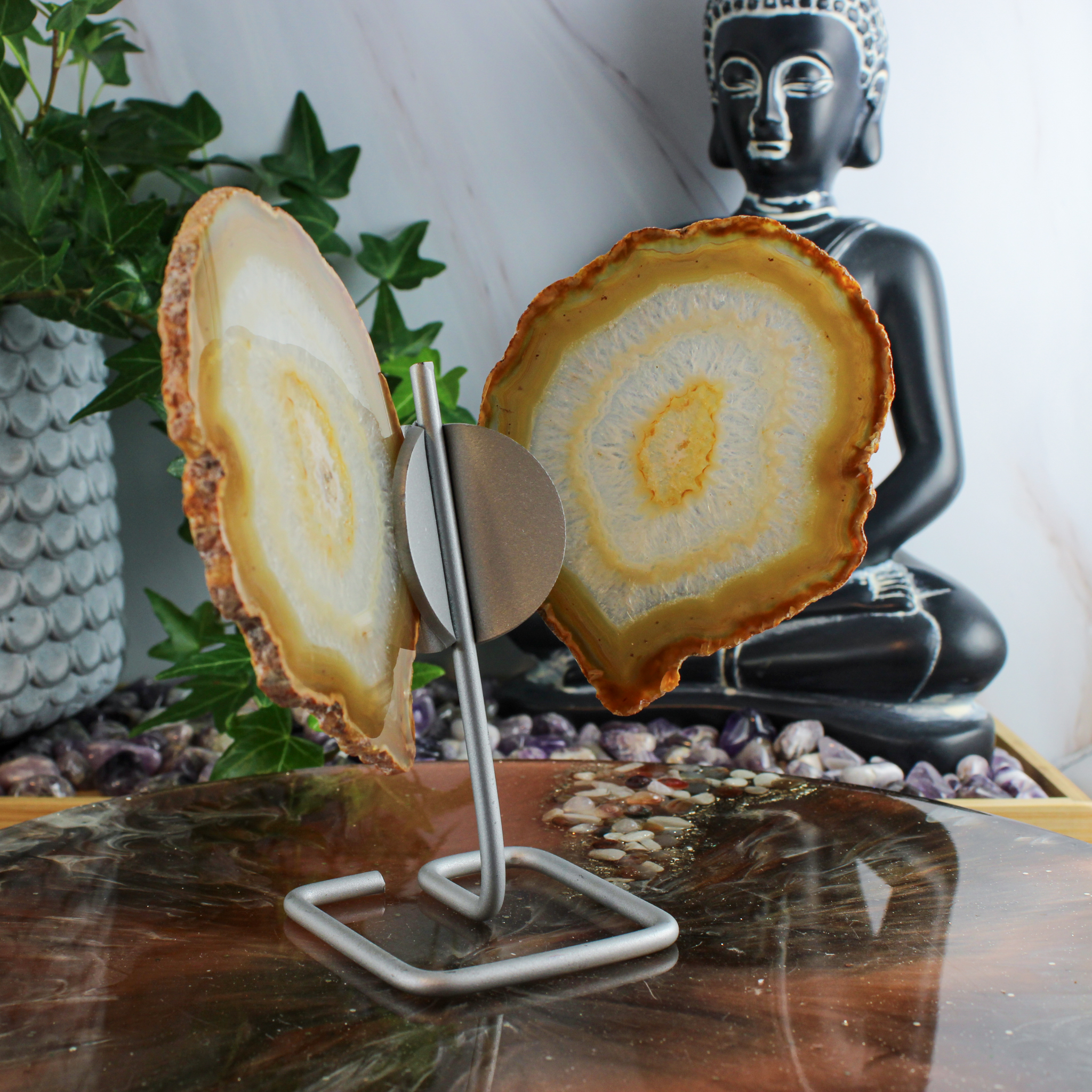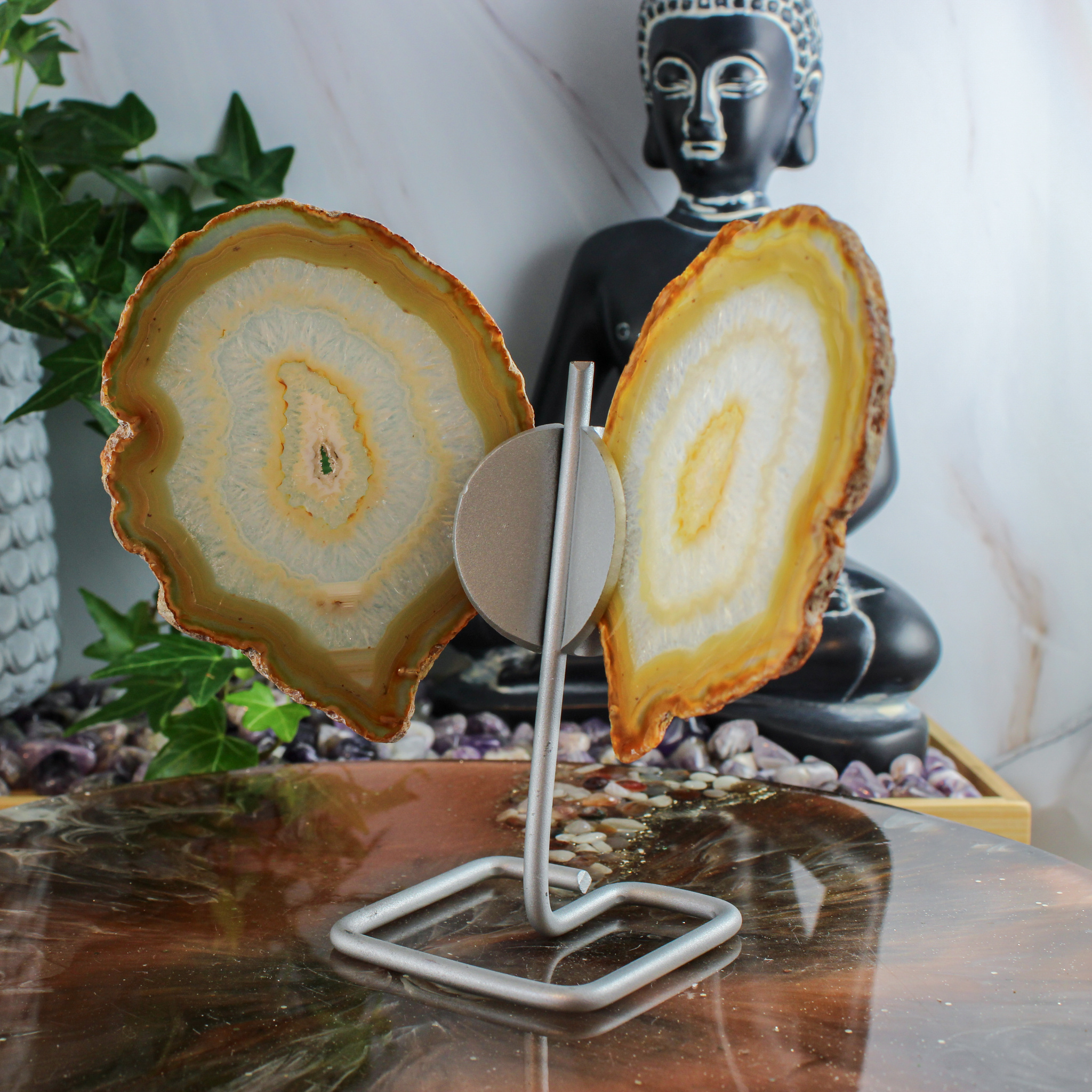 Dankzij haar natuurlijke karakter past deze agaat vlinder in veel interieurs zonder te overheersen. Zo haal je met deze agaat vlinder op standaard een bijzonder stukje natuur in huis dat rust, balans en een warme sfeer uitstraalt.