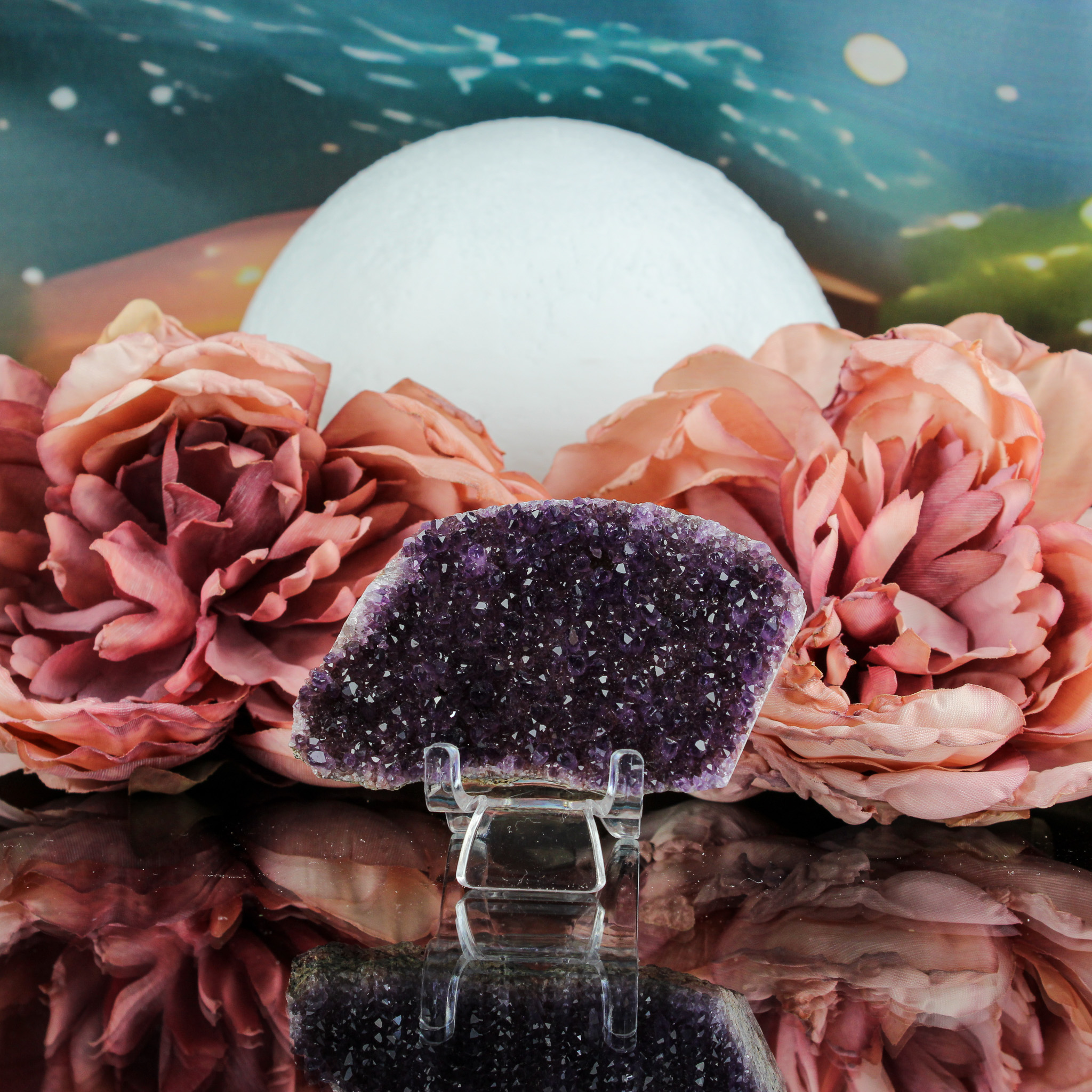 Veel exemplaren hebben een schitterend druzy-oppervlak: kleine kristalpunten die het licht vangen en laten fonkelen. Sommige stenen tonen ook een subtiele rokerige ondertoon, wat zorgt voor extra diepte. Alacam Amethist is dan ook niet alleen een visueel pareltje, maar ook geliefd bij kristalliefhebbers en energetisch werkenden.