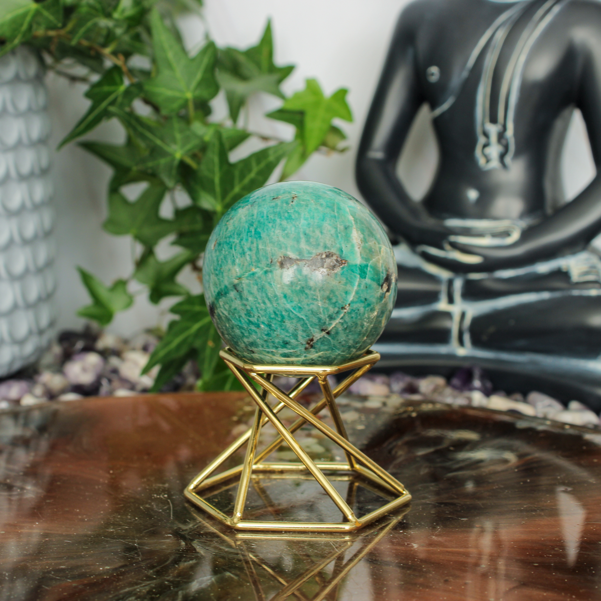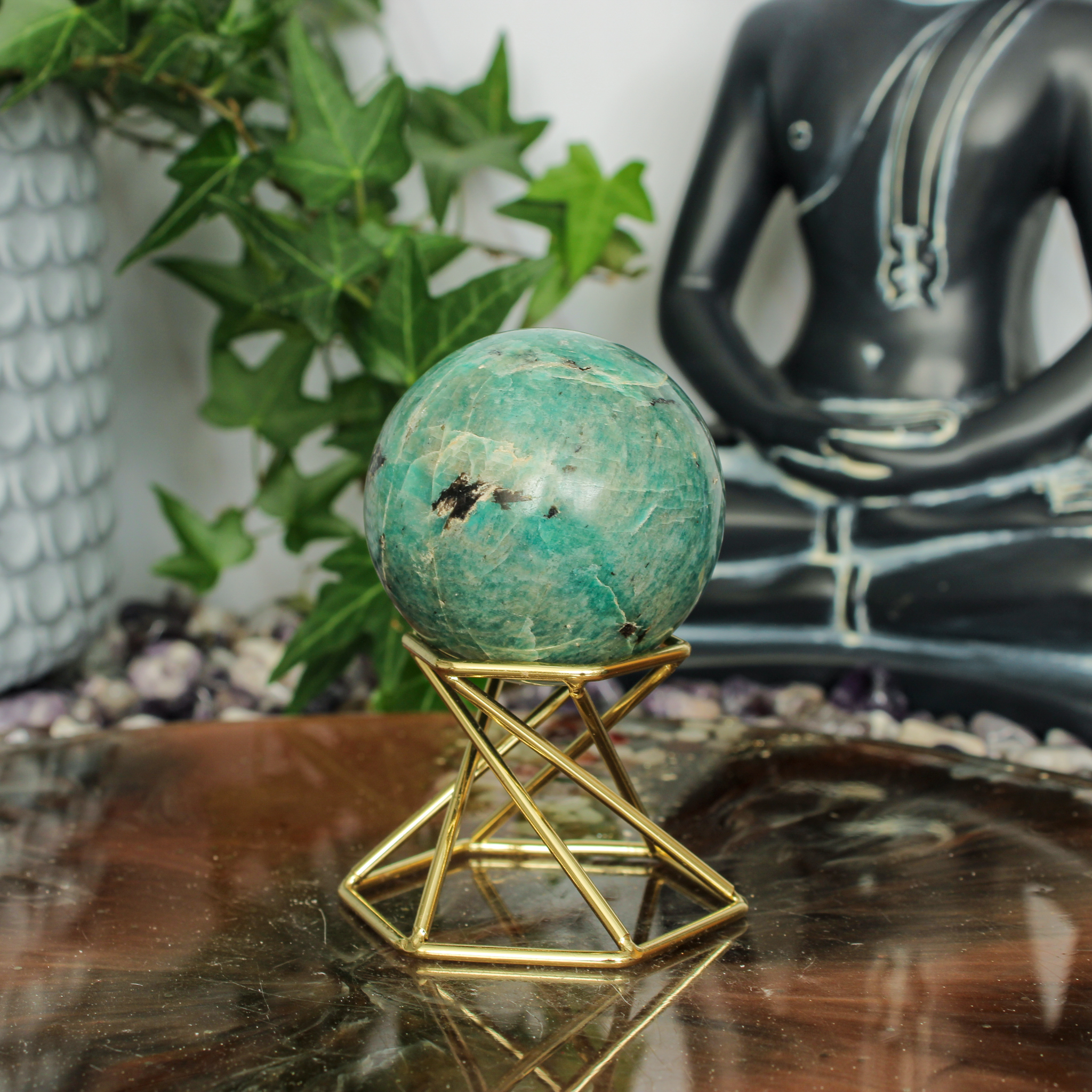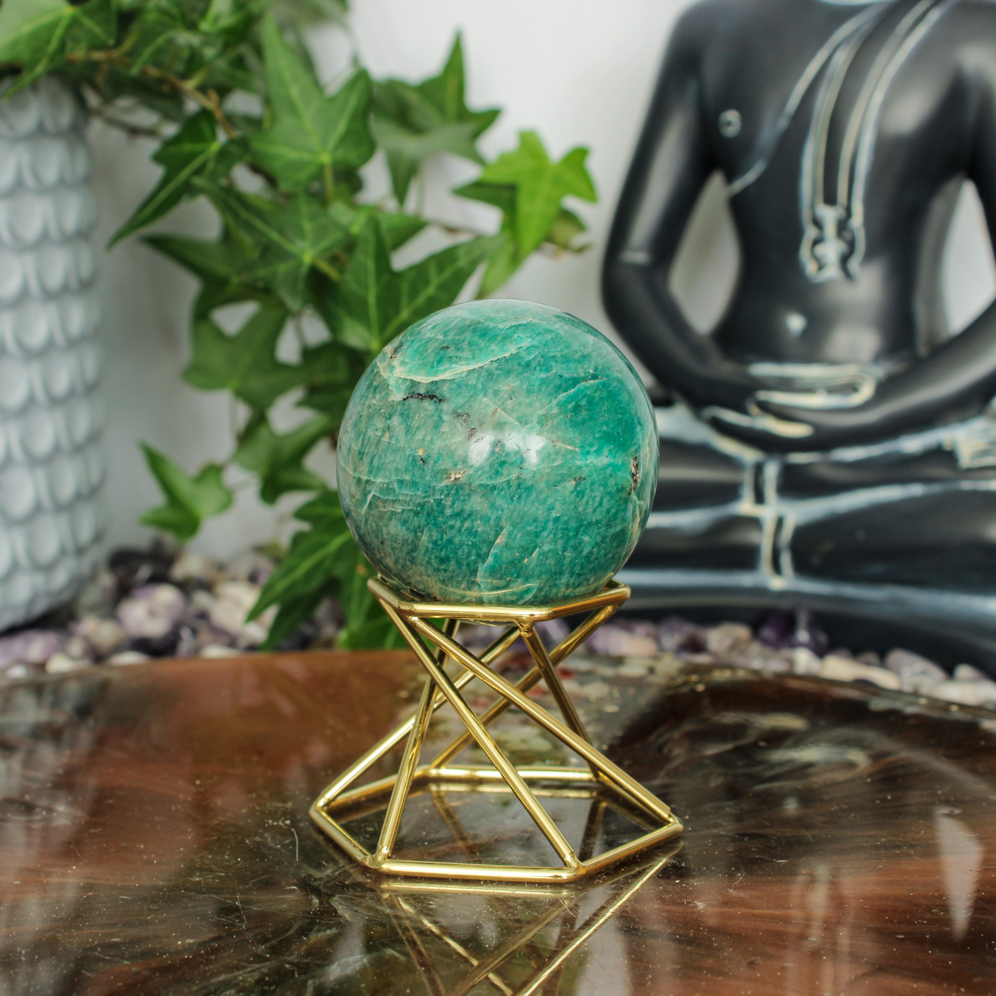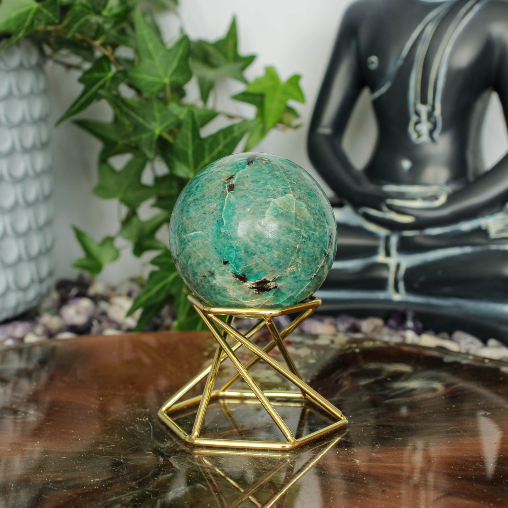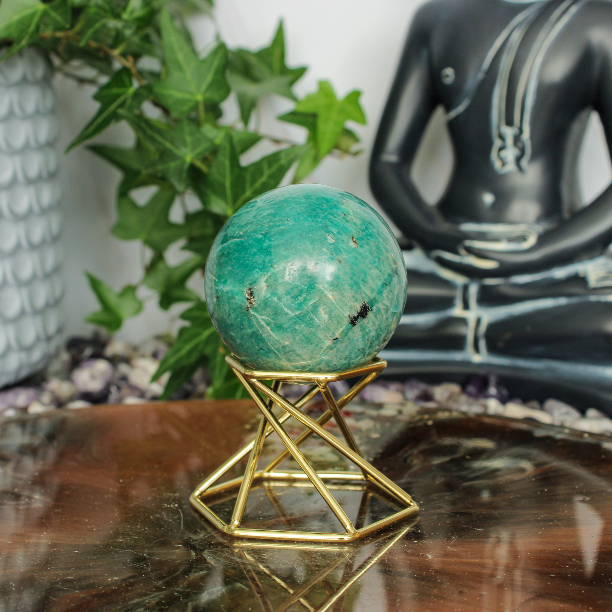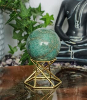 De bolvorm zorgt ervoor dat de energie zich gelijkmatig verspreidt in de ruimte. Dat maakt deze amazoniet bol een mooie steen voor plekken waar je rust en balans wilt creëren.
