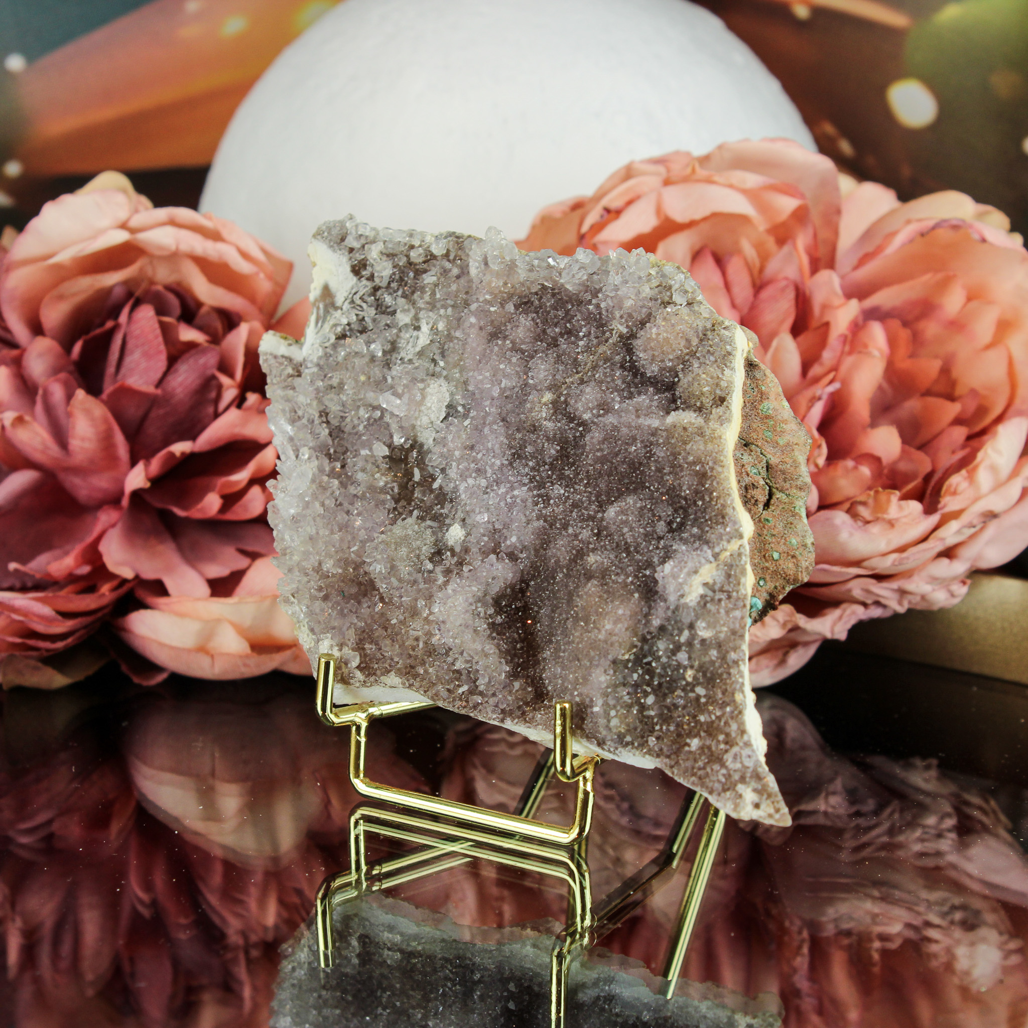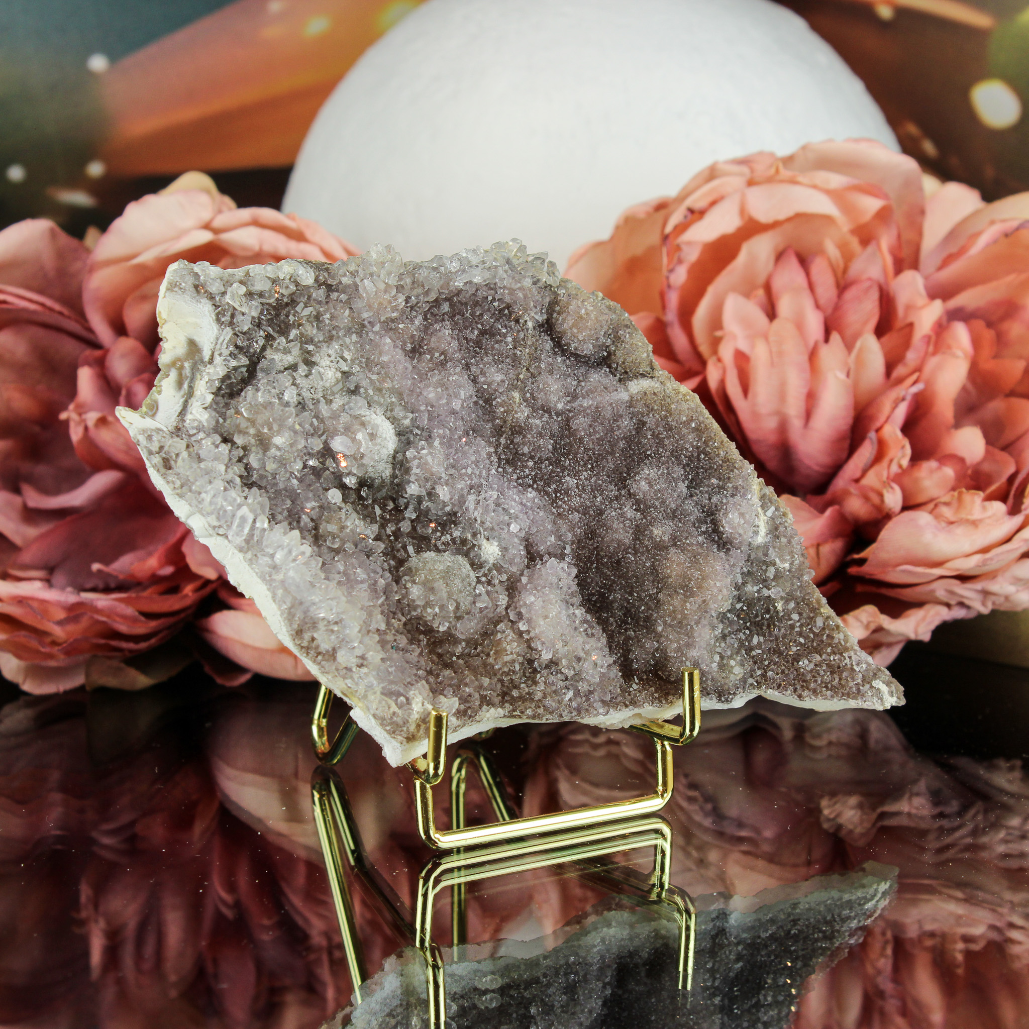 Veel exemplaren hebben een schitterend druzy-oppervlak: kleine kristalpunten die het licht vangen en laten fonkelen. Sommige stenen tonen ook een subtiele rokerige ondertoon, wat zorgt voor extra diepte. Alacam Amethist is dan ook niet alleen een visueel pareltje, maar ook geliefd bij kristalliefhebbers en energetisch werkenden.