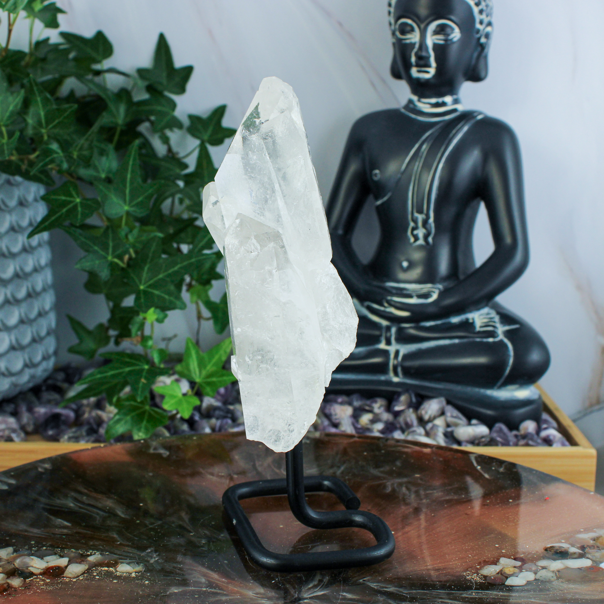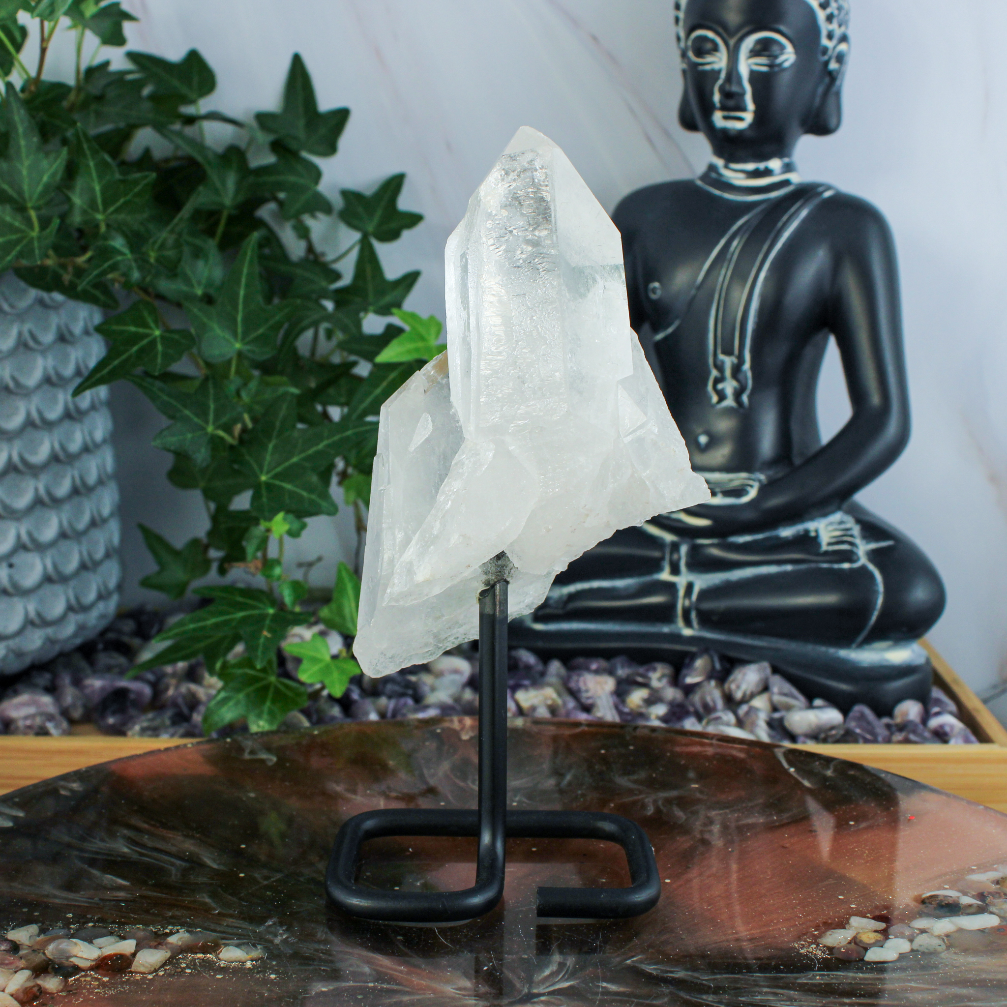 De standaard laat het cluster stevig staan en zorgt voor een mooie presentatie. Daardoor komt de vorm en structuur van het kristal volledig tot zijn recht en kun je het stuk gemakkelijk een mooie plek geven in je ruimte.