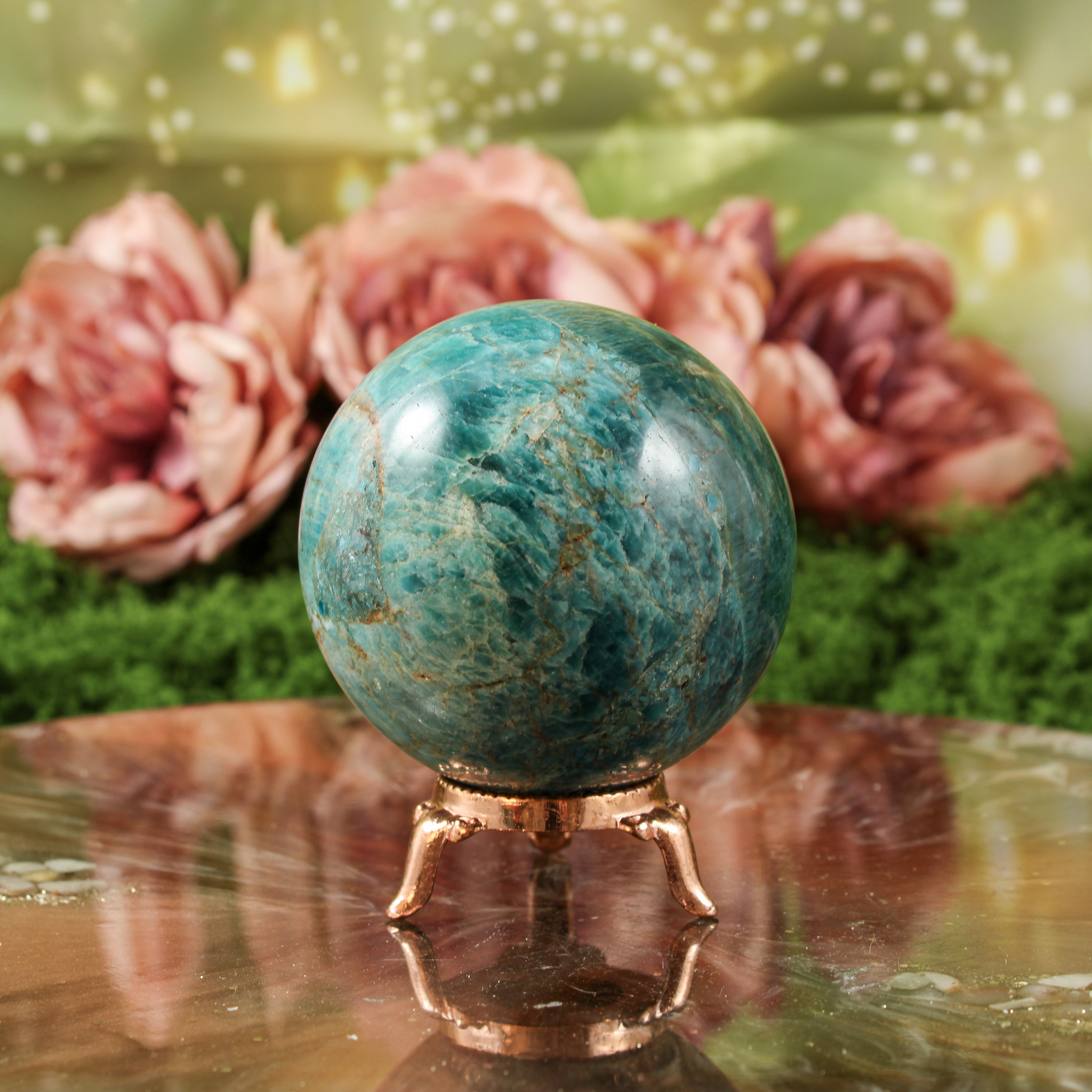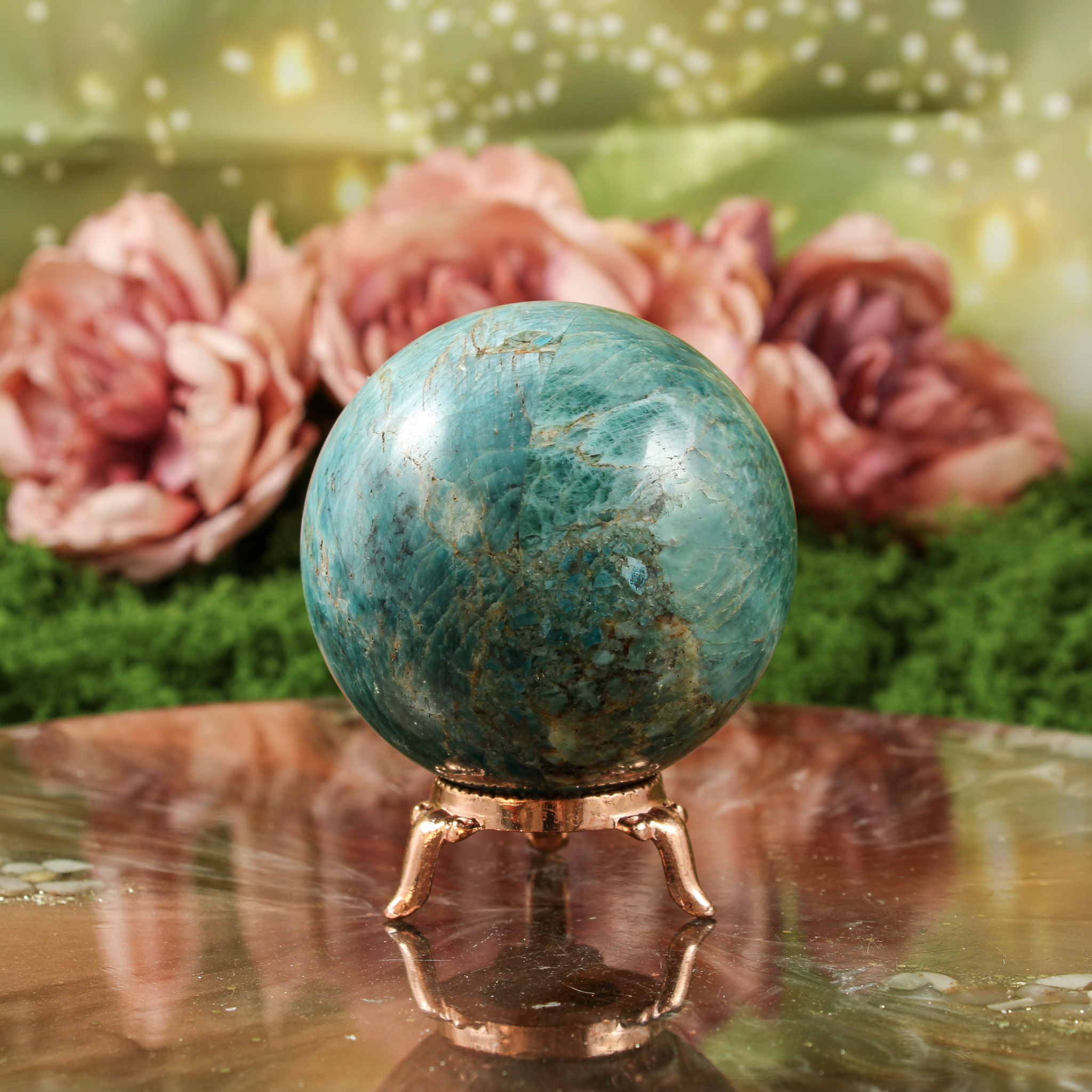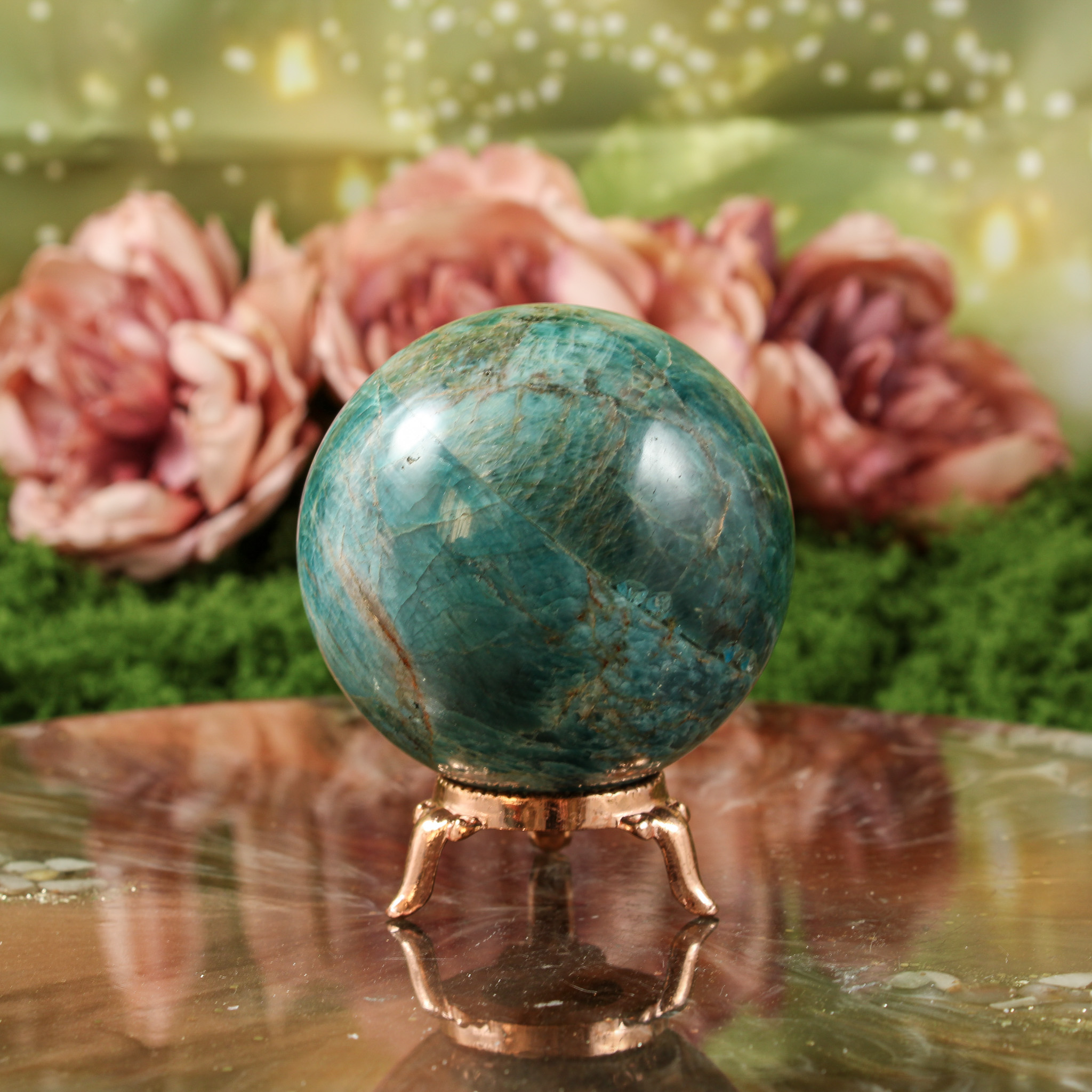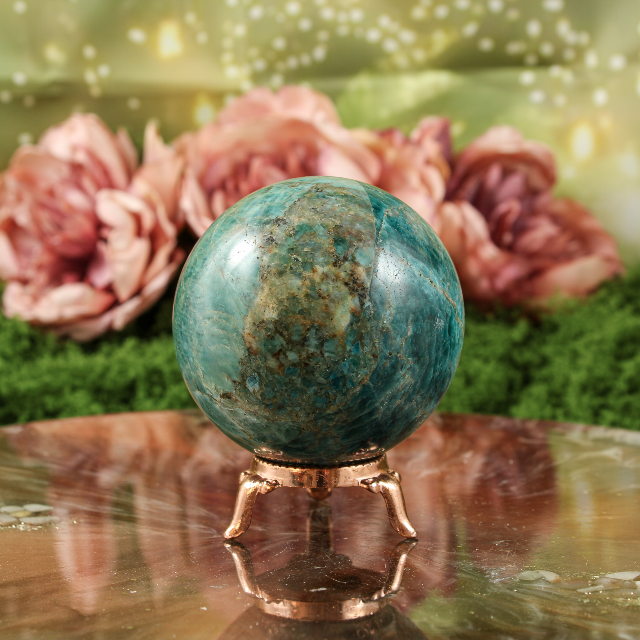 Ook als puur decoratief object is deze blauwe apatiet bol een mooie verschijning. Ze valt op door haar vorm en kleur en laat zich mooi combineren met andere edelstenen. Daardoor past ze moeiteloos in een verzameling of op een plek waar je graag edelstenen en andere natuurlijke vondsten samenbrengt.