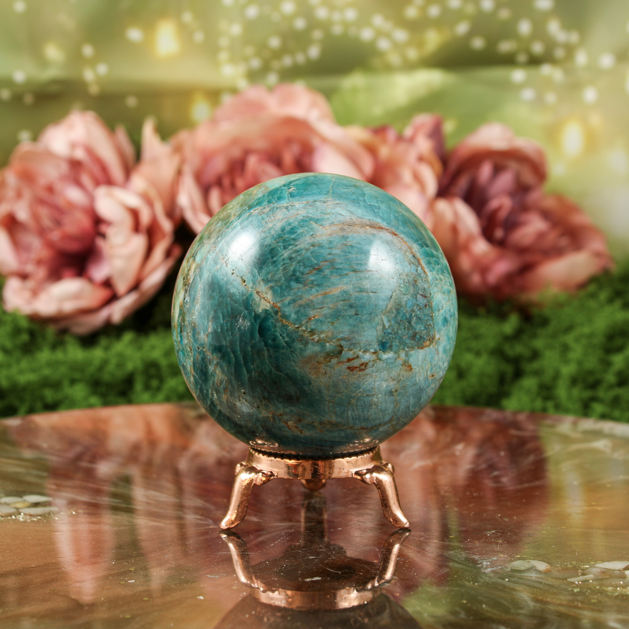 Elk exemplaar is uniek. De natuur heeft de steen gevormd, waardoor geen enkele bol hetzelfde is. De ene bol laat een lichtere blauwe tint zien, terwijl een andere juist meer diepte en nuance heeft. Ook de lijnen en details verschillen per stuk. Dat maakt elke blauwe apatiet bol een klein kunstwerk van de natuur, met een eigen karakter en uitstraling.