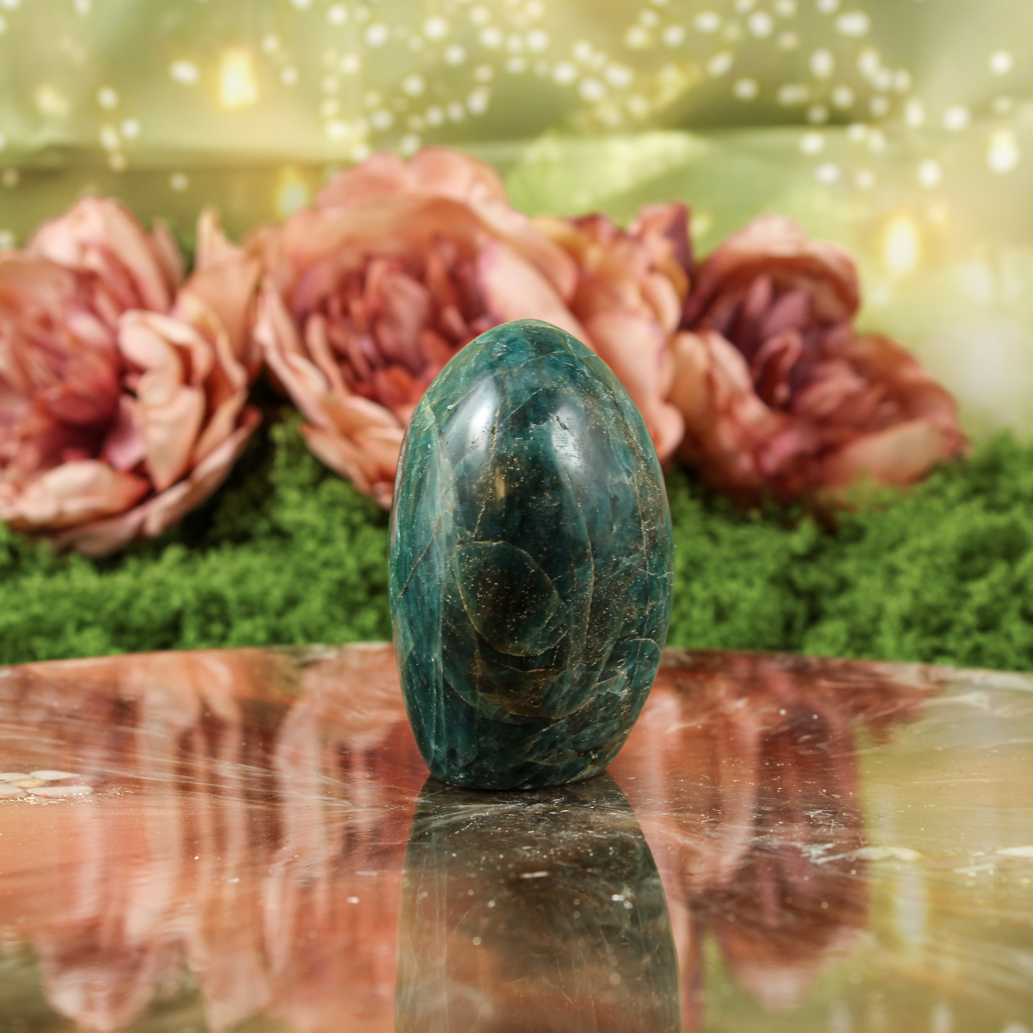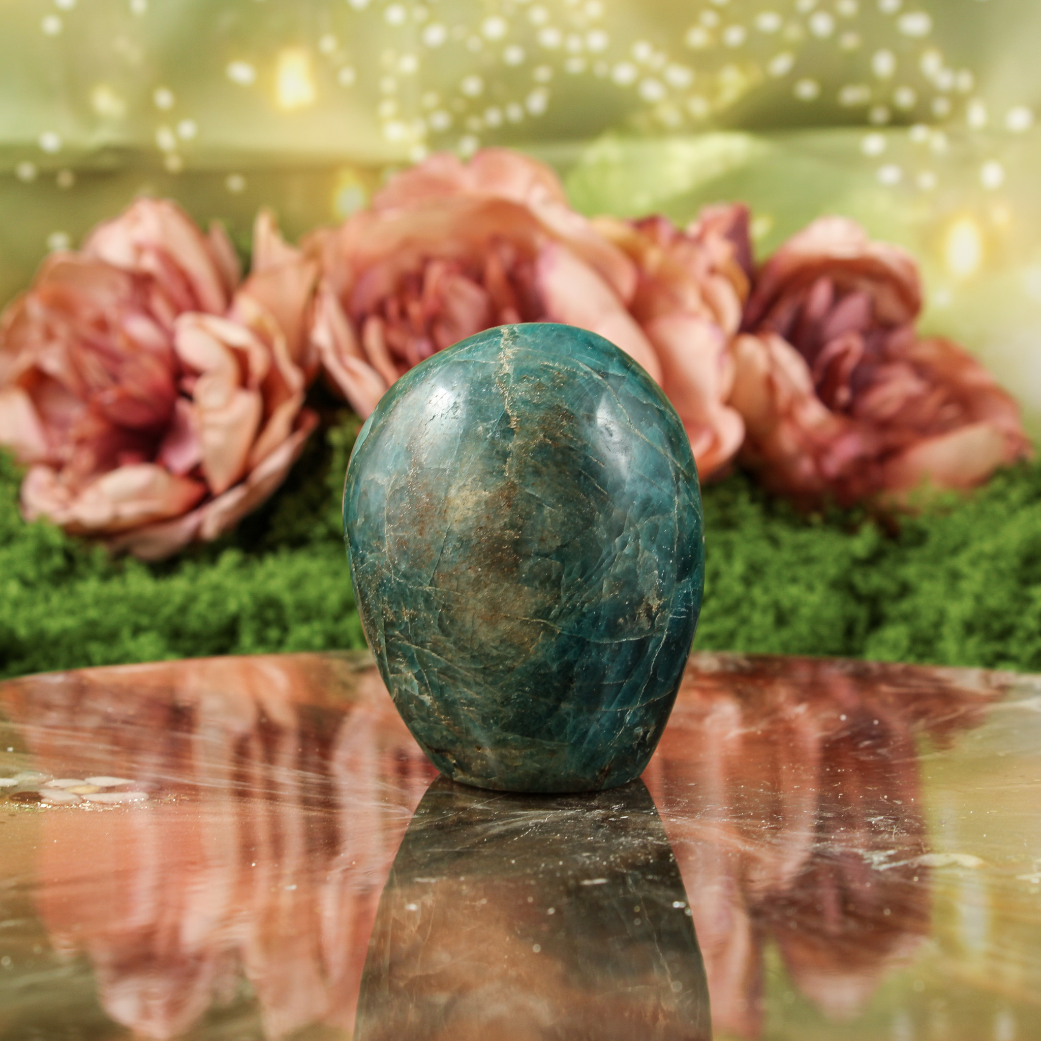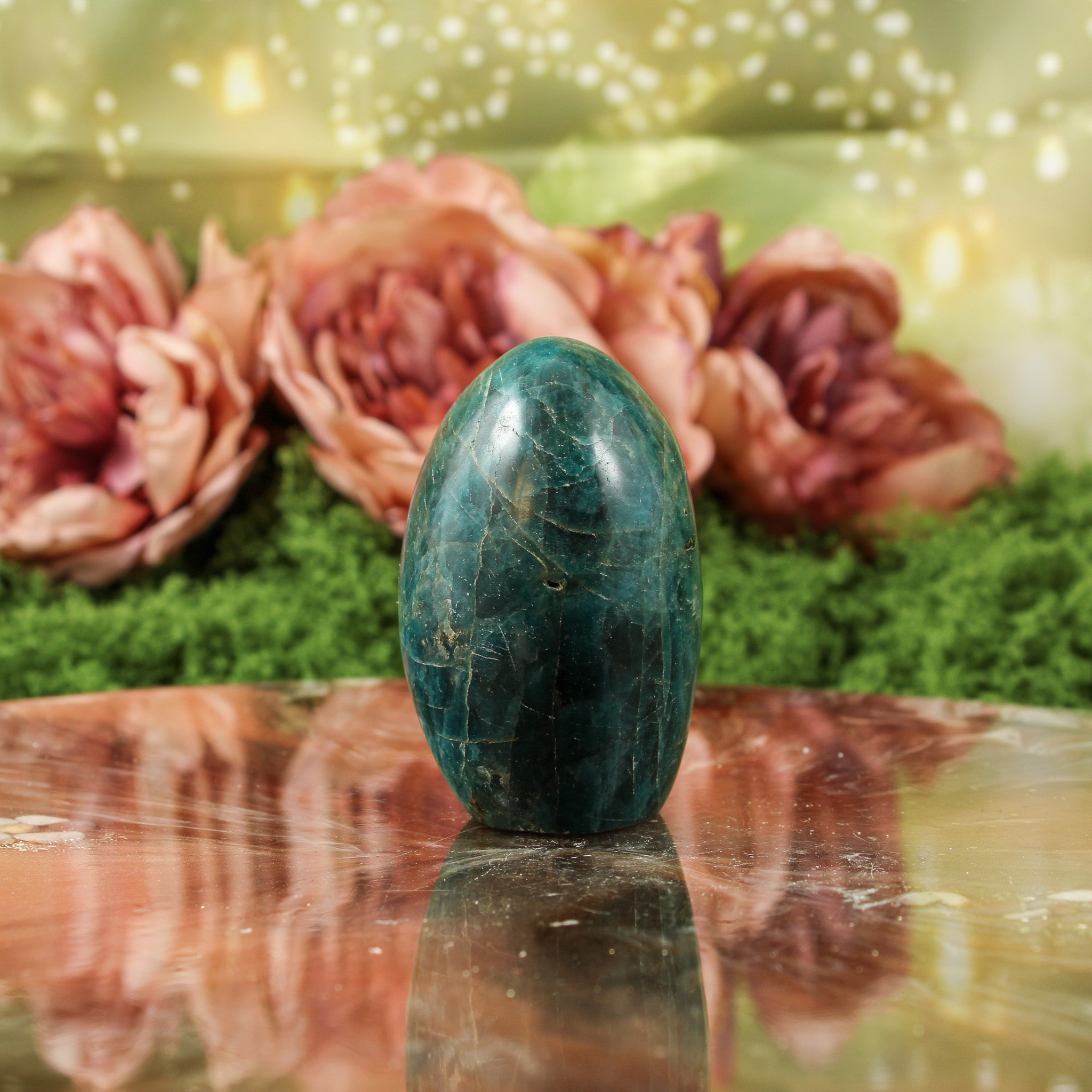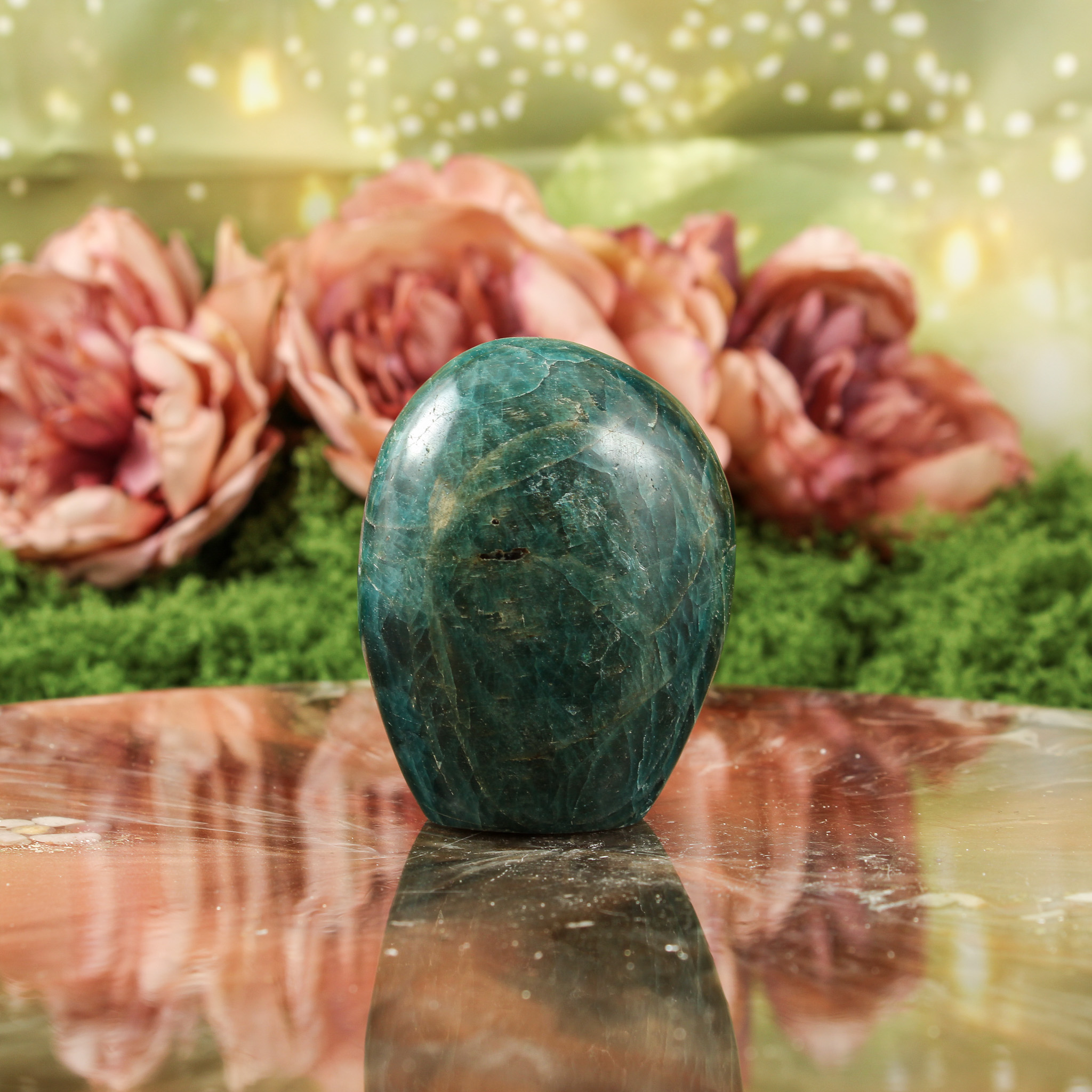 Ook als puur decoratief object is deze blauwe apatiet sculptuur een mooie verschijning. Ze valt op door haar vorm en kleur en laat zich mooi combineren met andere edelstenen. Daardoor past ze moeiteloos in een verzameling of op een plek waar je graag edelstenen en andere natuurlijke vondsten samenbrengt.