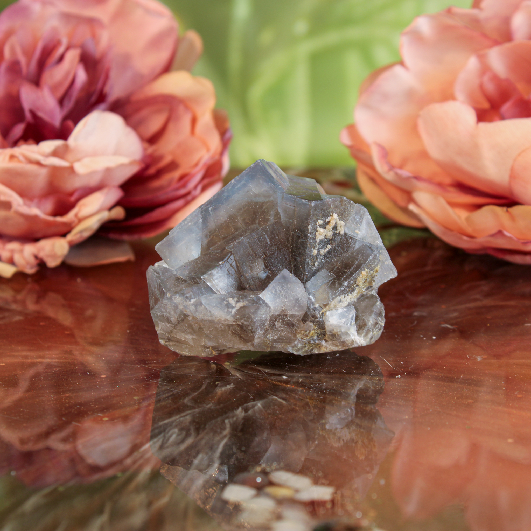 Ook als decoratief stuk heeft deze blauwgrijze fluoriet een rustige en natuurlijke uitstraling. De zachte kleuren en ruwe kristalvormen maken haar mooi om neer te zetten op een plank, in een kast of tussen andere edelstenen. Zowel los als in combinatie met andere mineralen komt ze goed tot haar recht.