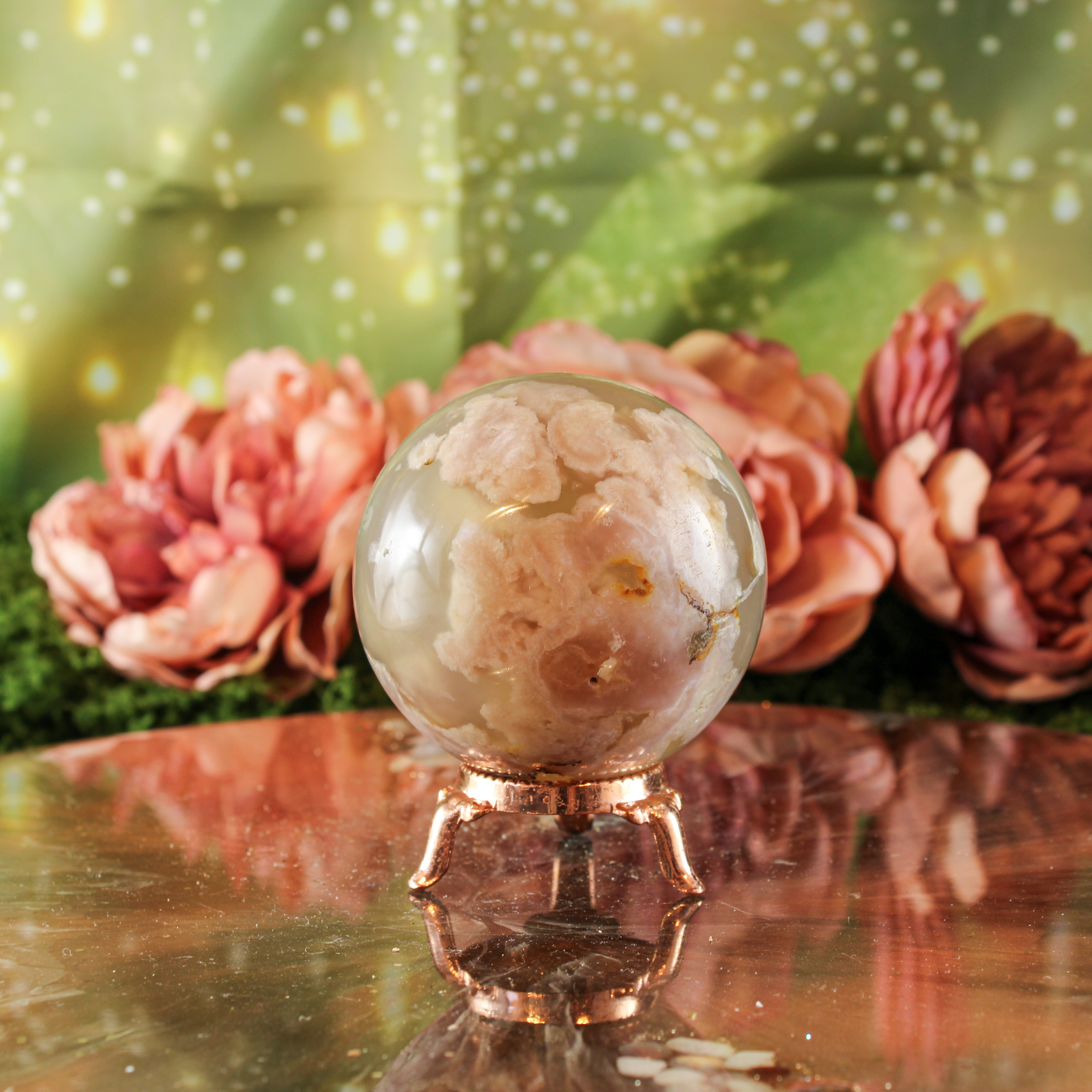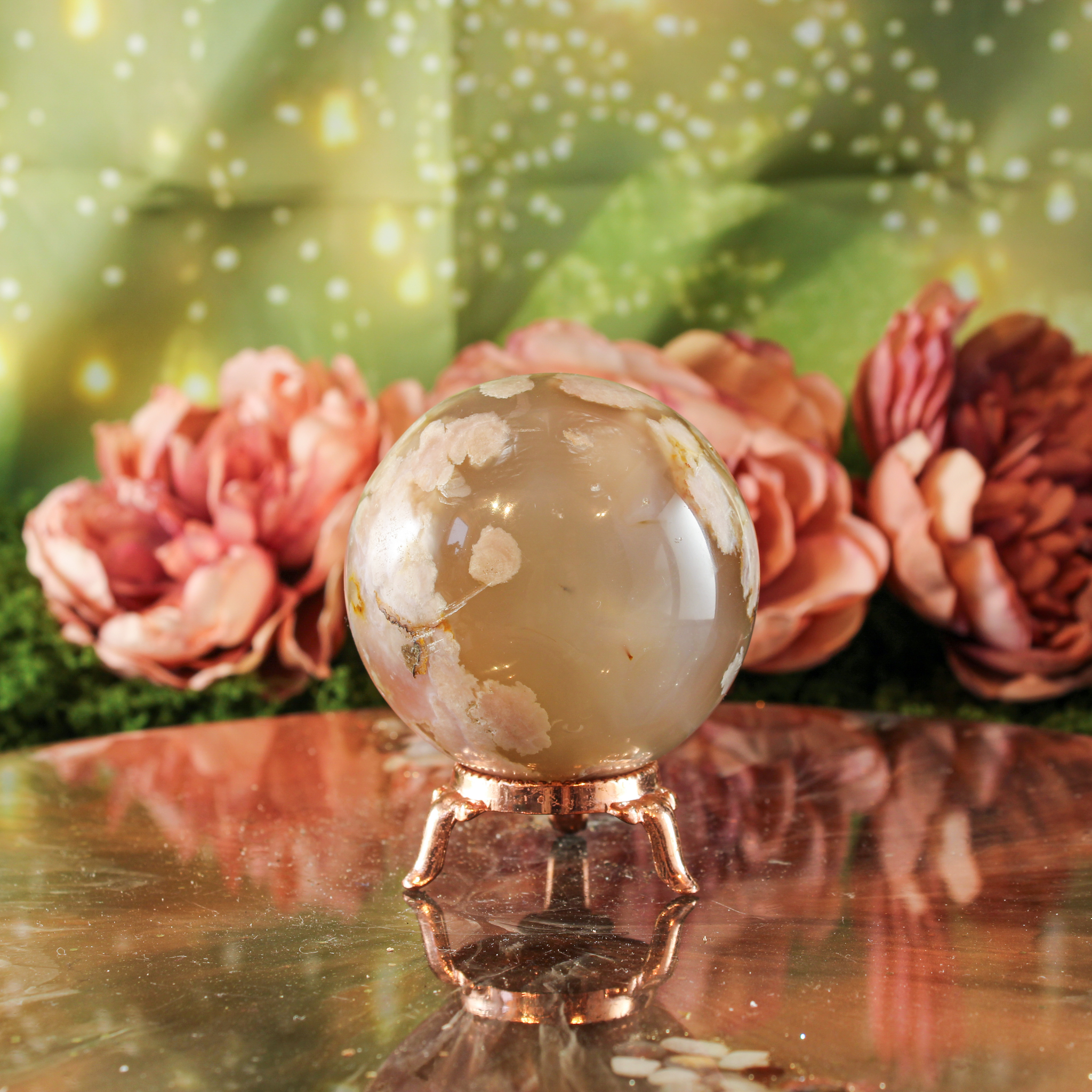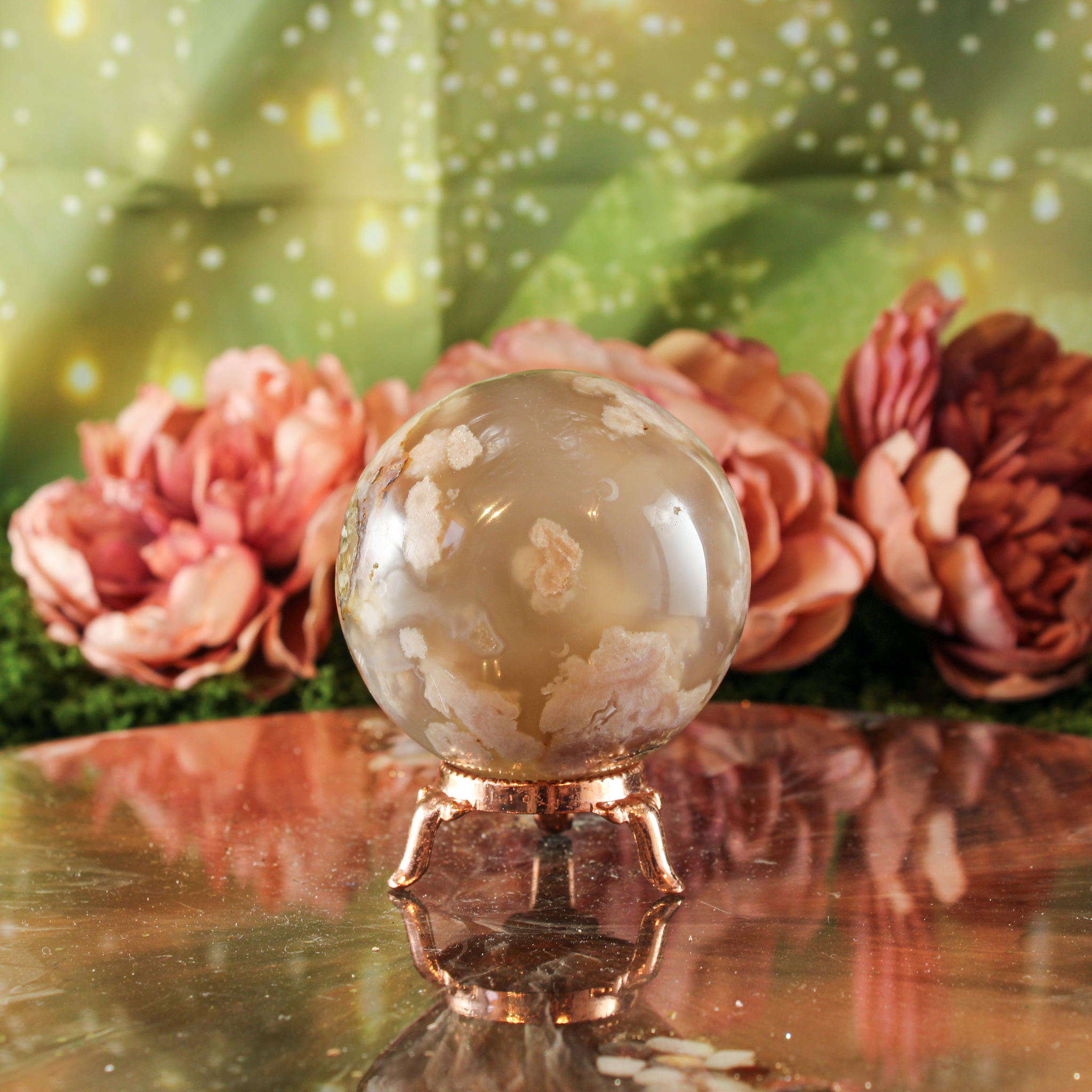 De bolvorm geeft deze bloemagaat een extra fijne symboliek. Een bol staat voor heelheid, harmonie en balans. Omdat een bol energie gelijkmatig in alle richtingen verspreidt, kiezen veel mensen een edelstenen bol wanneer ze een rustige, zachte energie in een ruimte willen brengen. Het voelt alsof de steen je helpt om meer in het midden te blijven, met een kalme en stabiele basis.