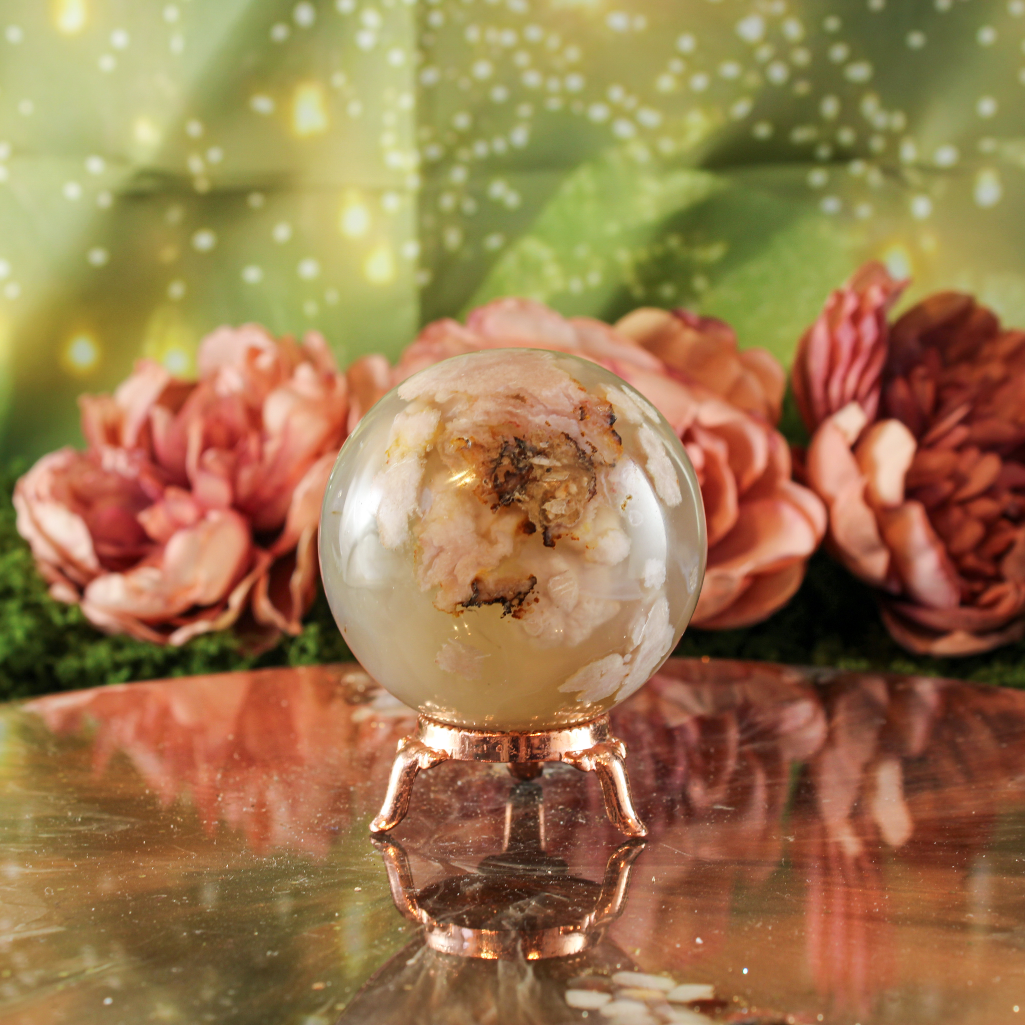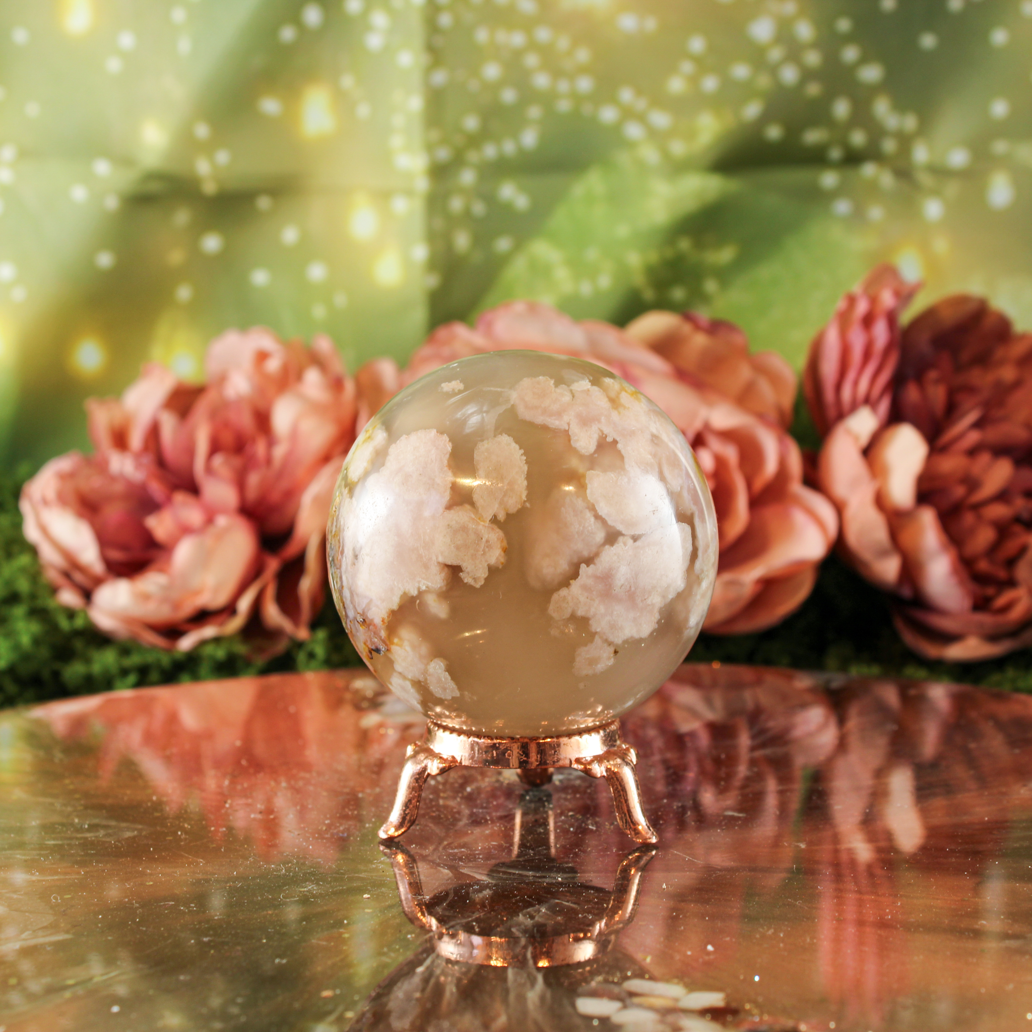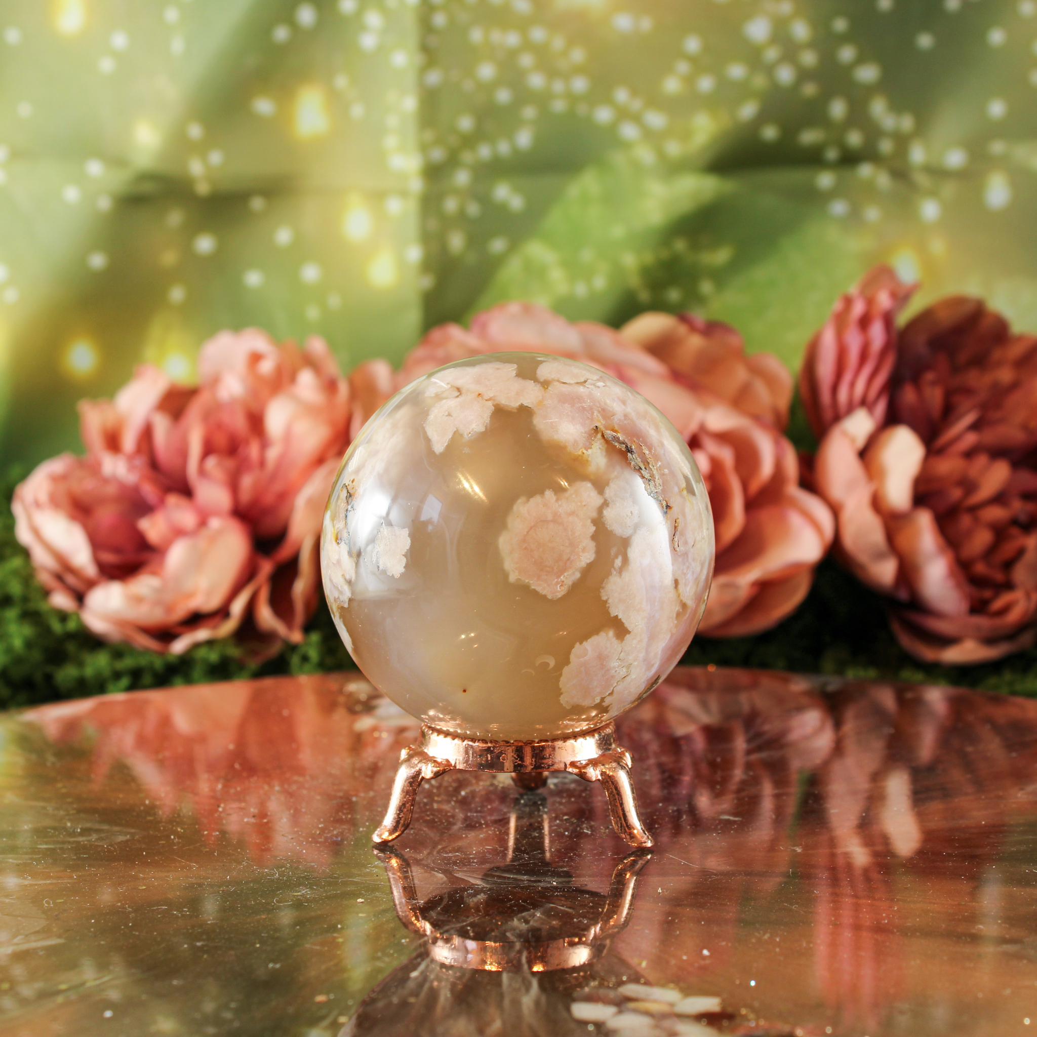 De bolvorm geeft deze bloemagaat een extra fijne symboliek. Een bol staat voor heelheid, harmonie en balans. Omdat een bol energie gelijkmatig in alle richtingen verspreidt, kiezen veel mensen een edelstenen bol wanneer ze een rustige, zachte energie in een ruimte willen brengen. Het voelt alsof de steen je helpt om meer in het midden te blijven, met een kalme en stabiele basis.
