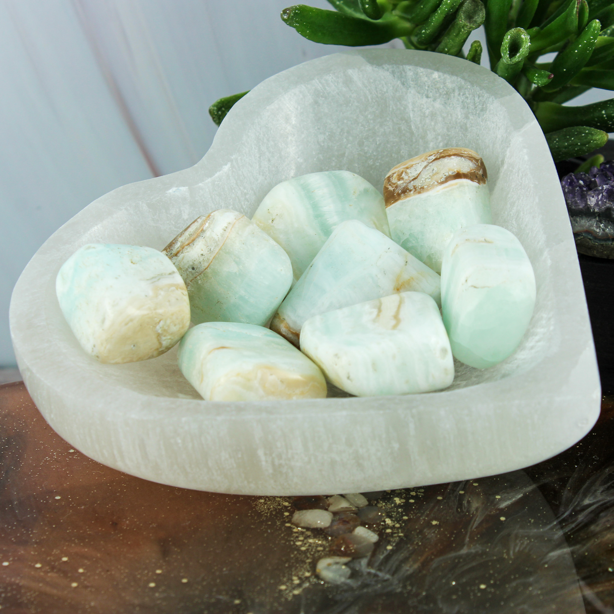 Je ontvangt een willekeurig Caribbean calciet trommelsteen uit de voorraad. Deze trommelstenen zijn ongeveer 2,5 a 3,5 cm en het gewicht is tussen de 20 a 29 gram.