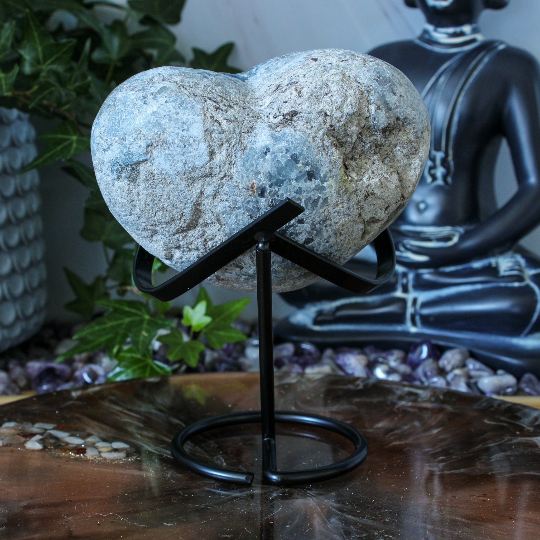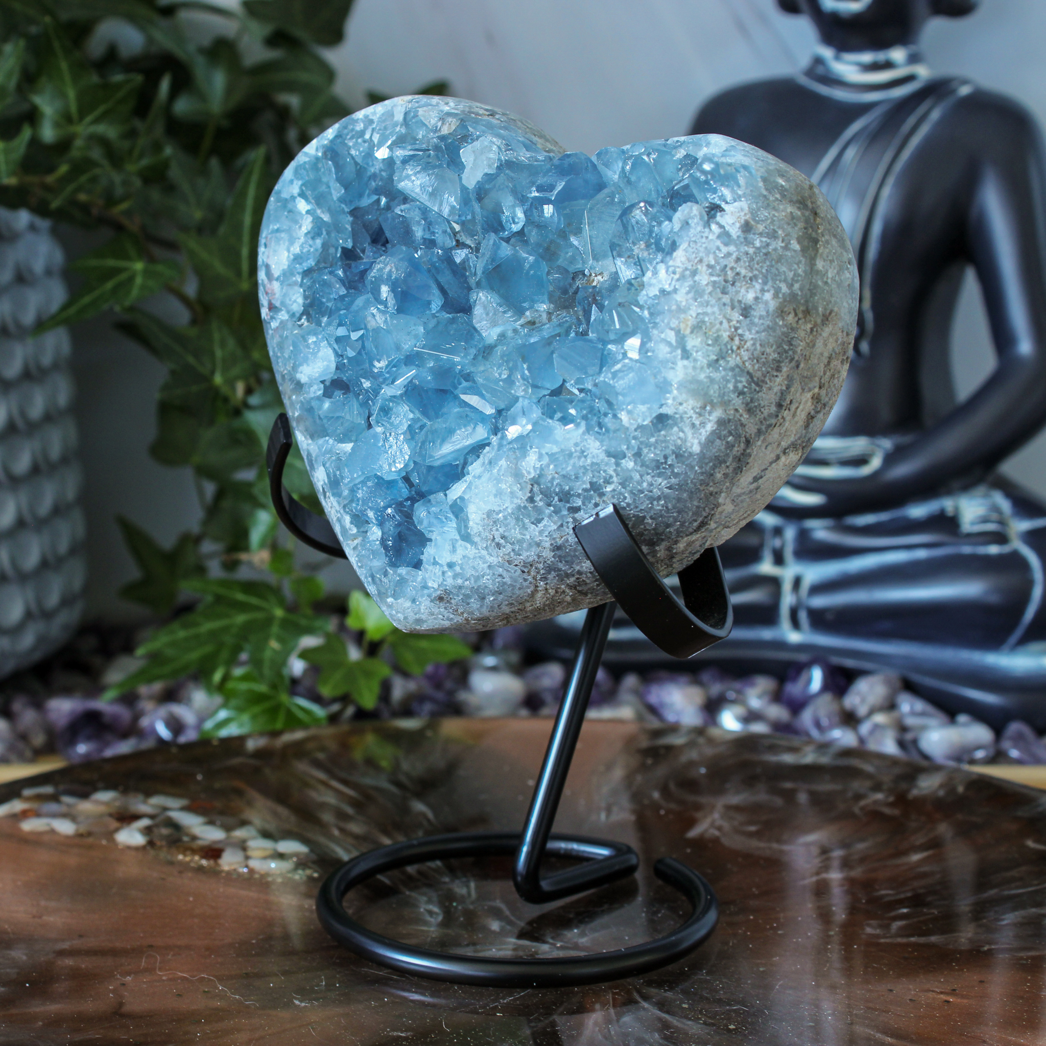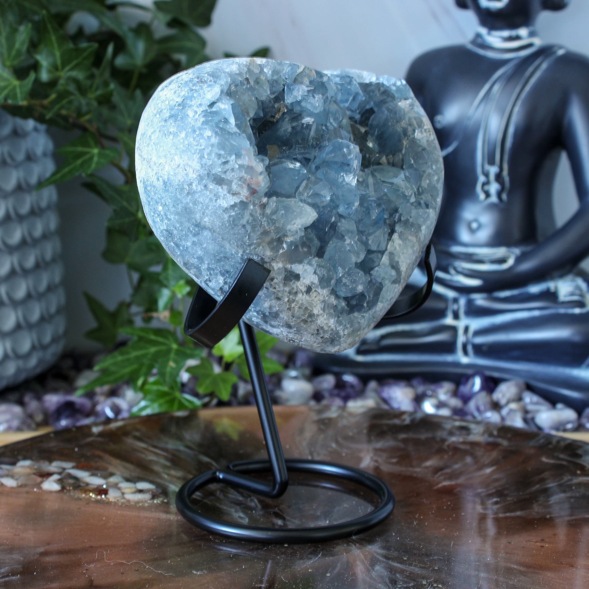 Met dit celestien hart haal je niet alleen een mooi stuk natuur in huis, maar ook een rustige, heldere energie. Die verrijkt je interieur op een fijne en uitnodigende manier.