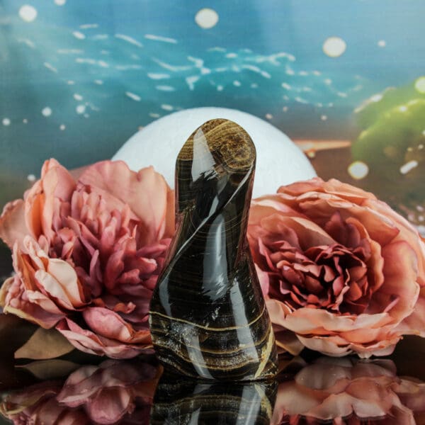Chocolade calciet vlam afkomstig uit Pakistan. De afmetingen zijn L 4,8 x B 3,2 x H 9,9 cm en het gewicht is 226 gram.