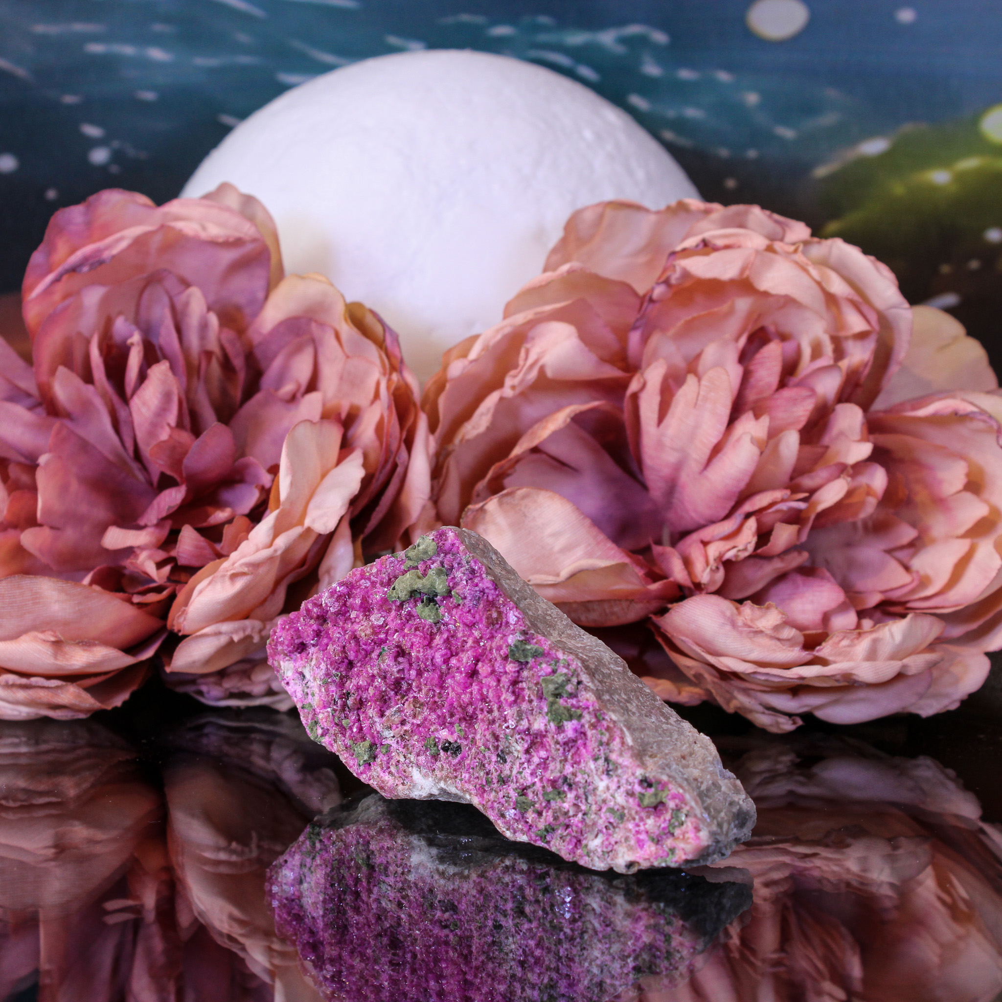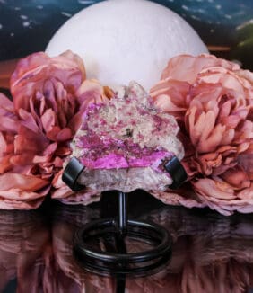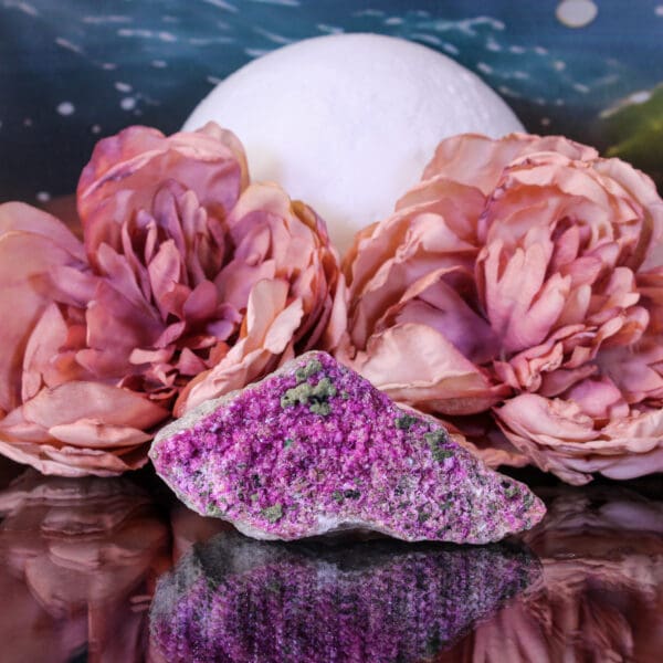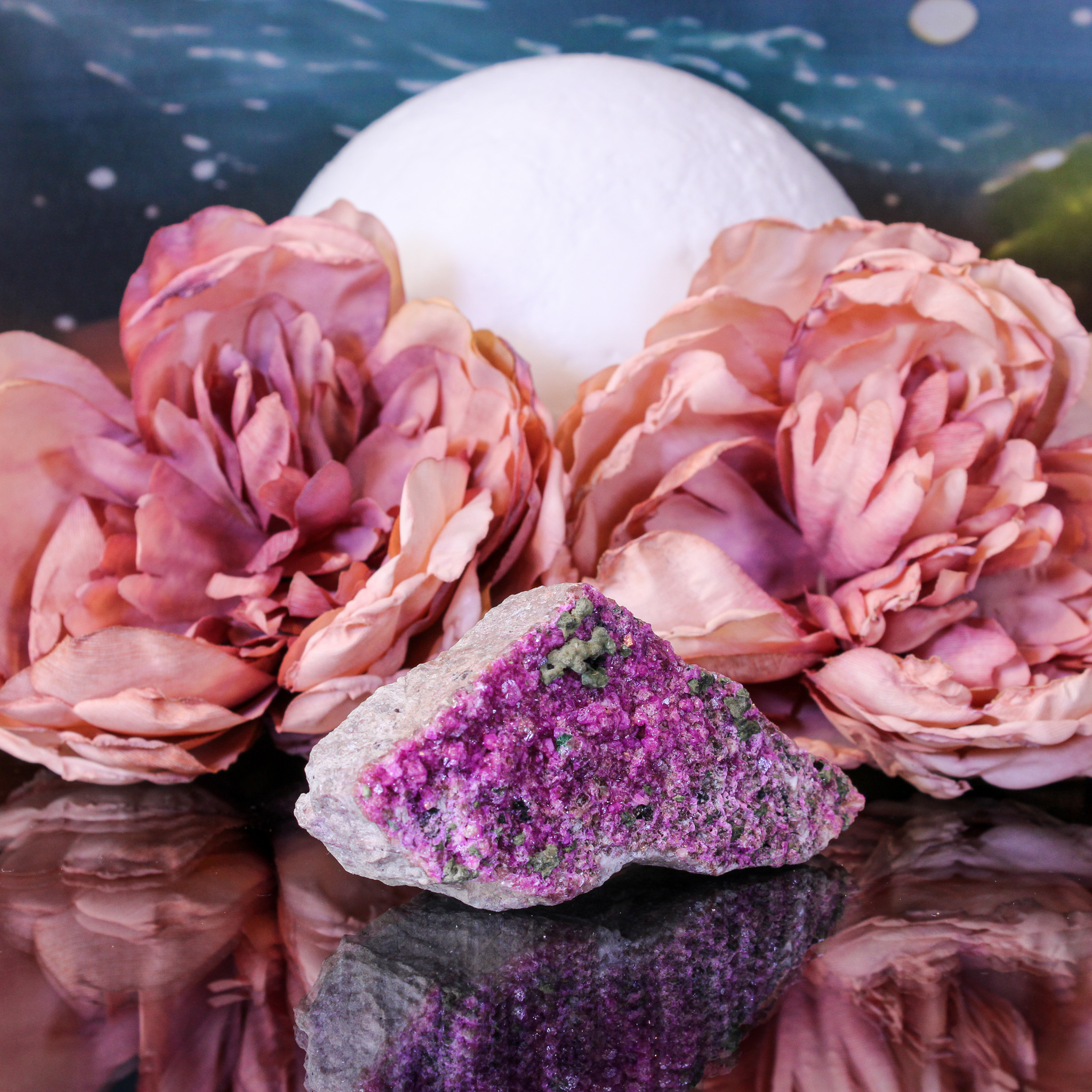 Deze ruwe cobalto calciet is een waar kunstwerk van de natuur. Met haar diepe roze tot fuchsia-achtige kristallen en ruwe structuur straalt ze pure, onbewerkte energie uit. Cobalto calciet wordt vaak de steen van onvoorwaardelijke liefde genoemd – en dat is niet voor niets. Alleen al het zien van deze steen opent het hart en nodigt uit tot verzachting.