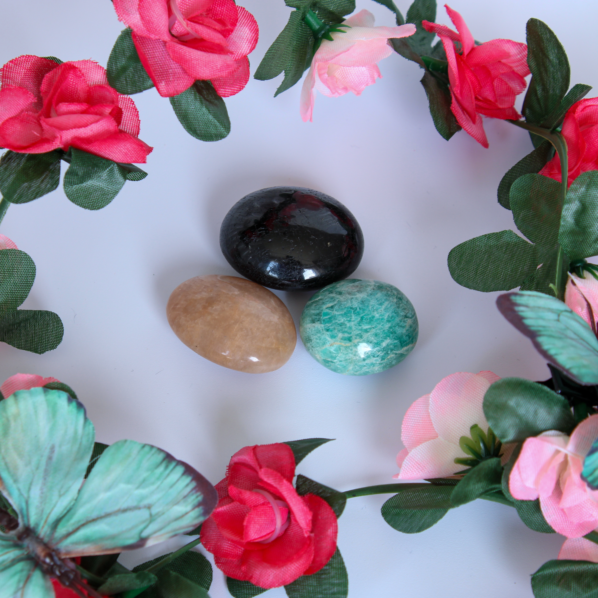 | Steensoort | Amazoniet, Perzik maansteen, Zwarte toermalijn |