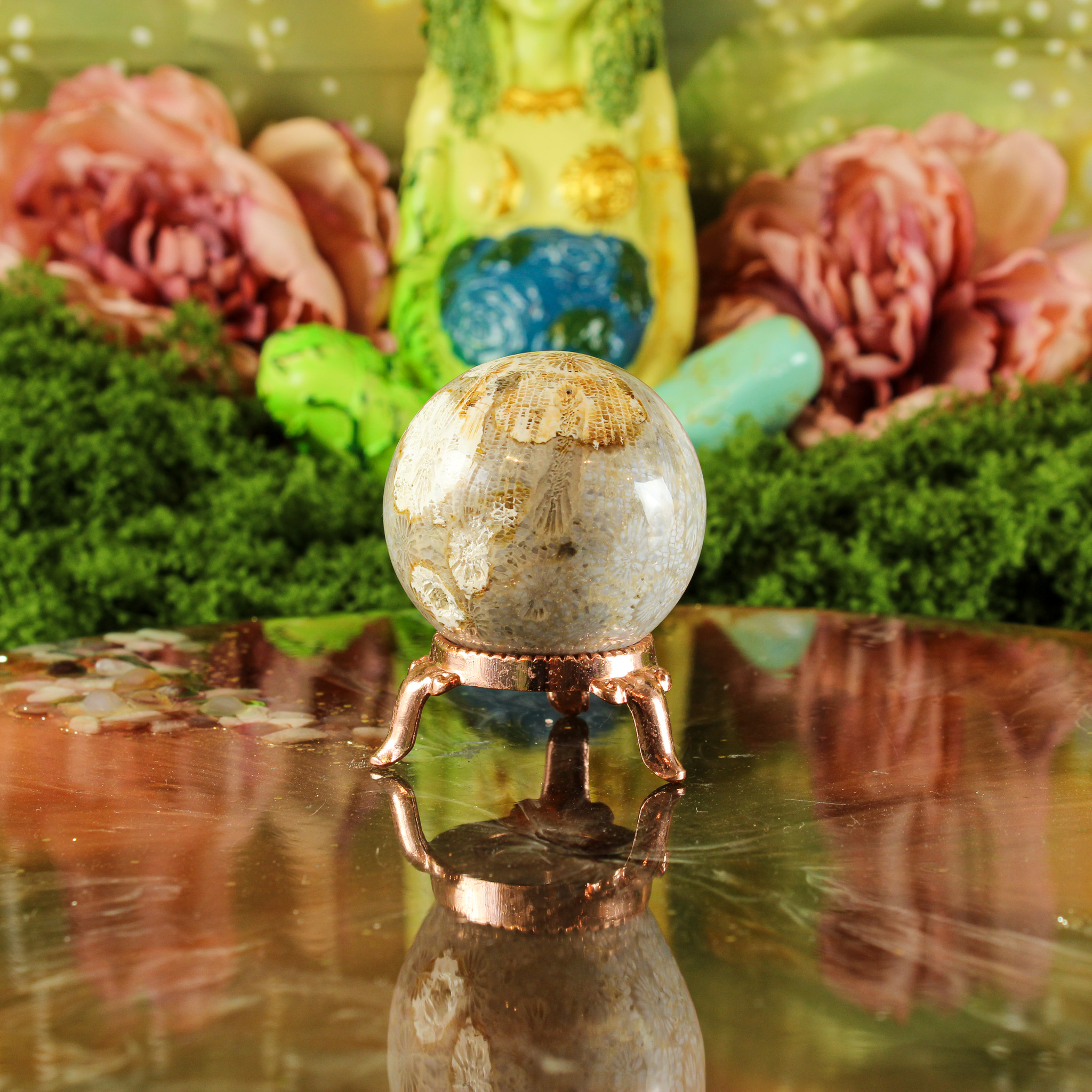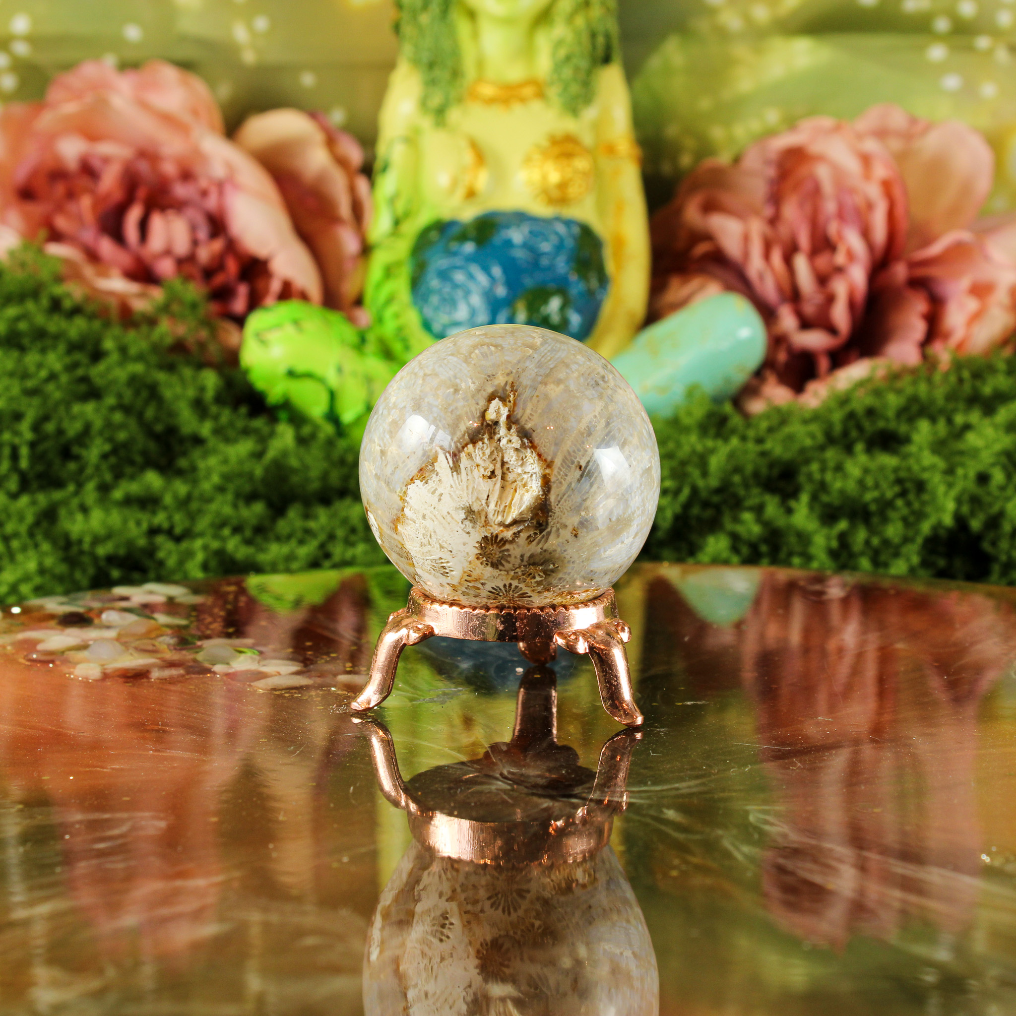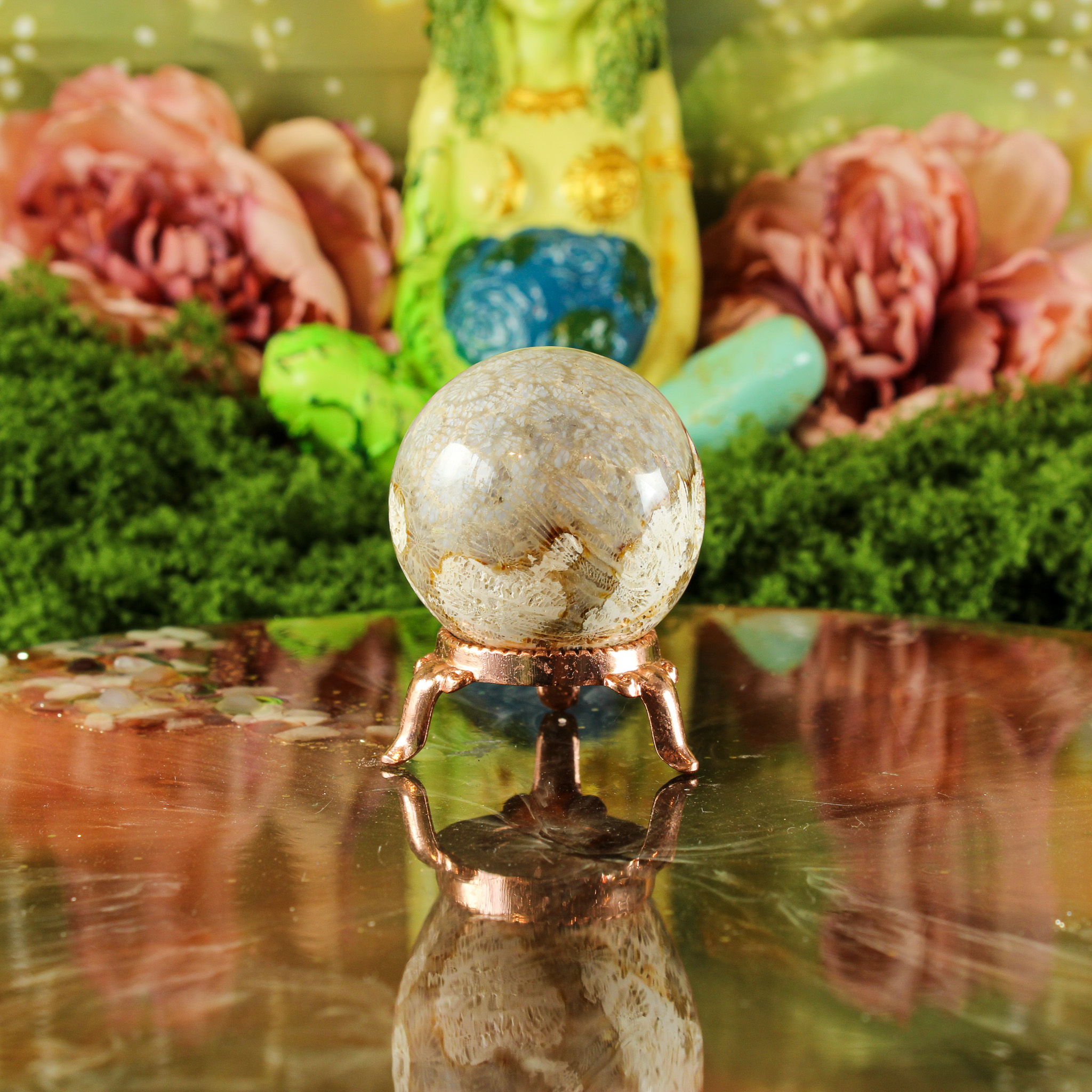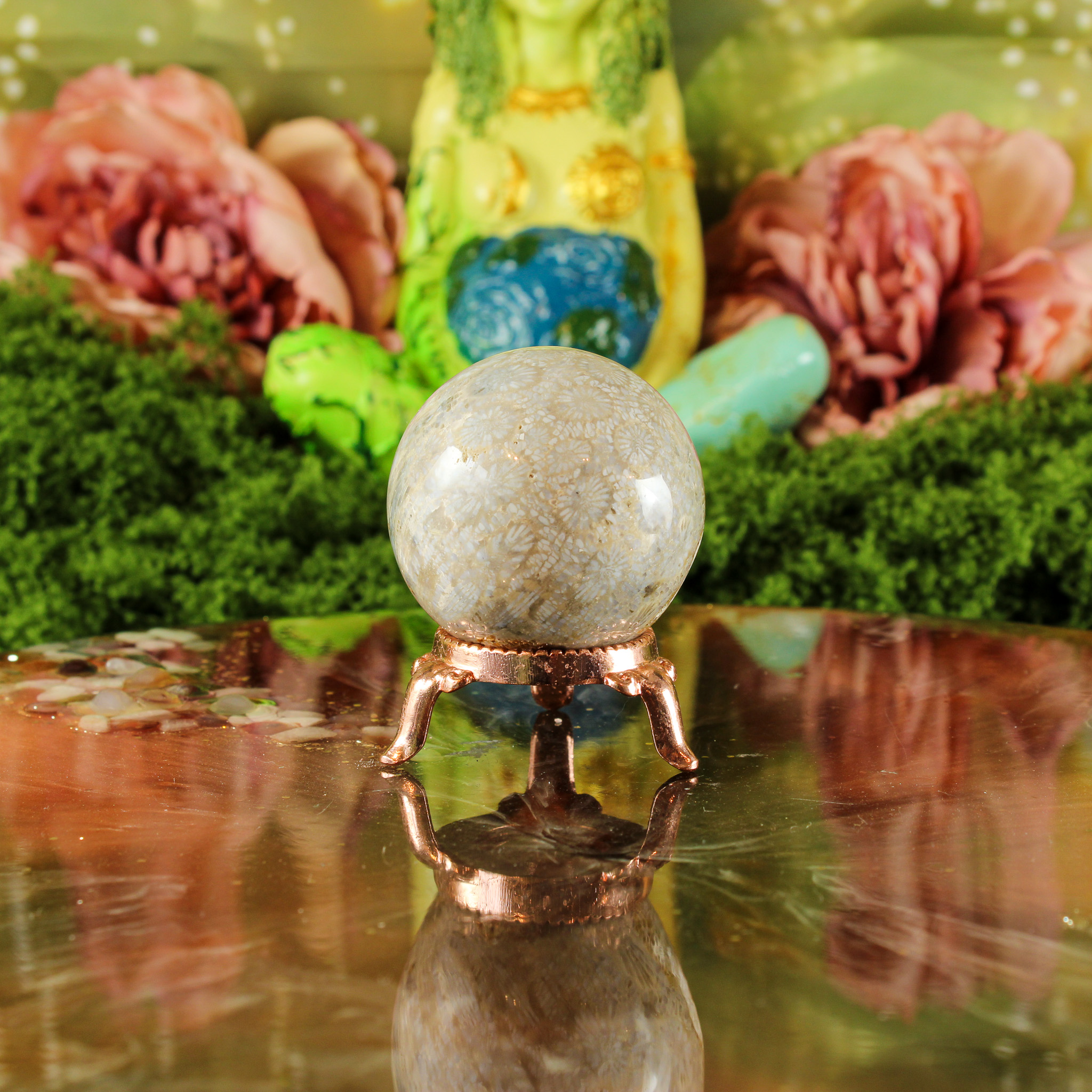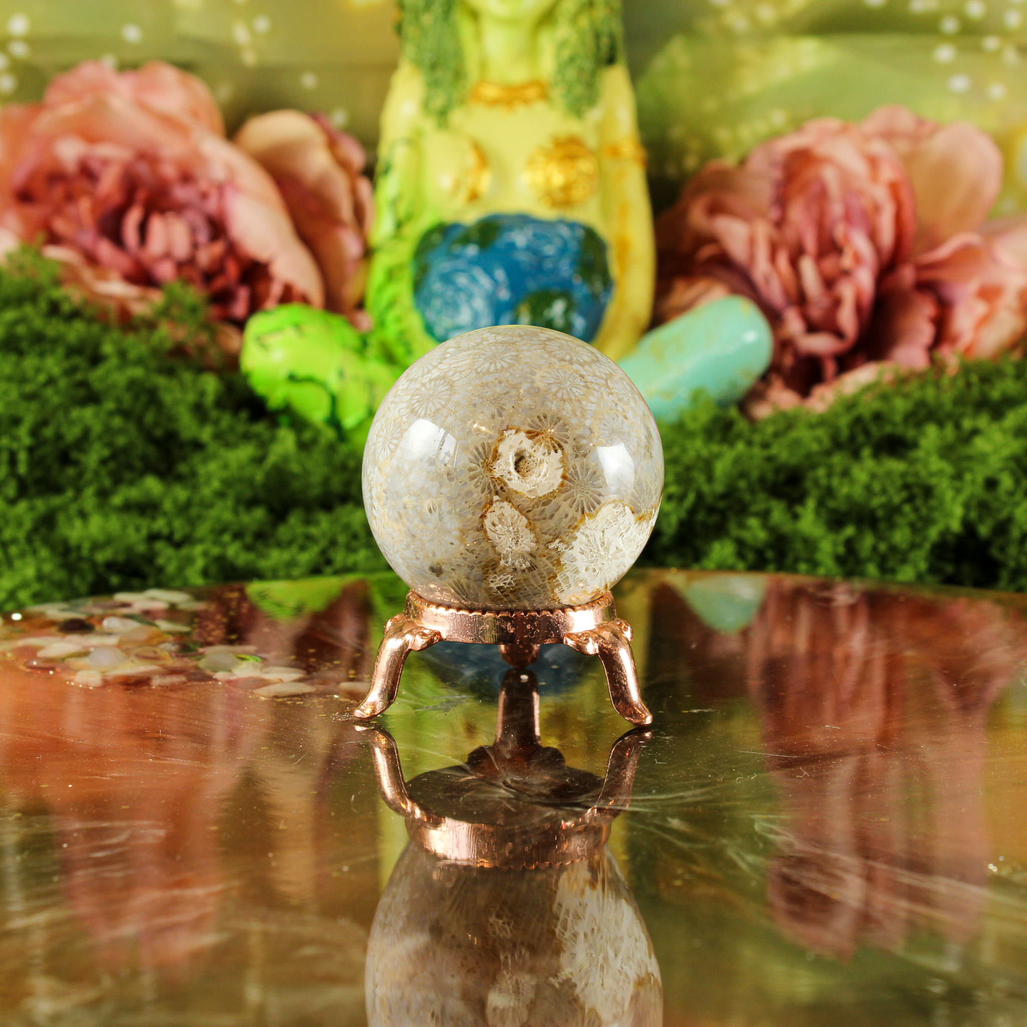 De bolvorm versterkt de energie van deze bijzondere steen. Bollen symboliseren volledigheid, eenheid en oneindigheid, wat goed aansluit bij de eigenschappen van fossiel koraal. De ronde vorm helpt de energie subtiel en gelijkmatig te verspreiden, waardoor de helende kracht optimaal tot zijn recht komt.