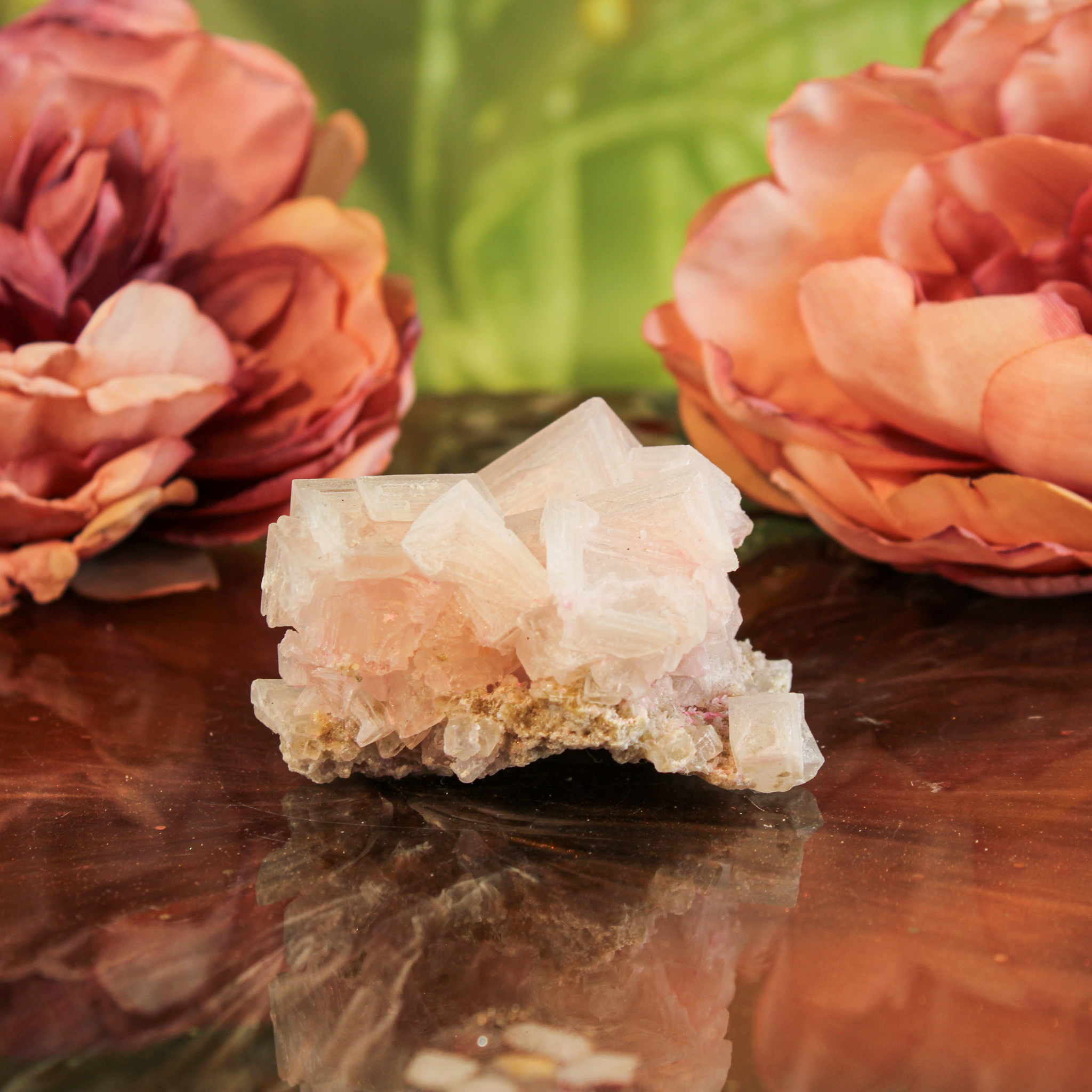 Als decoratief stuk heeft dit lichtroze haliet cluster een zachte en serene uitstraling. De subtiele roze kristallen brengen een warme, rustige sfeer in je ruimte en trekken op een verfijnde manier de aandacht. Ze komt mooi tot haar recht op een plank, in een kast of op een rustige plek waar ze goed zichtbaar is.