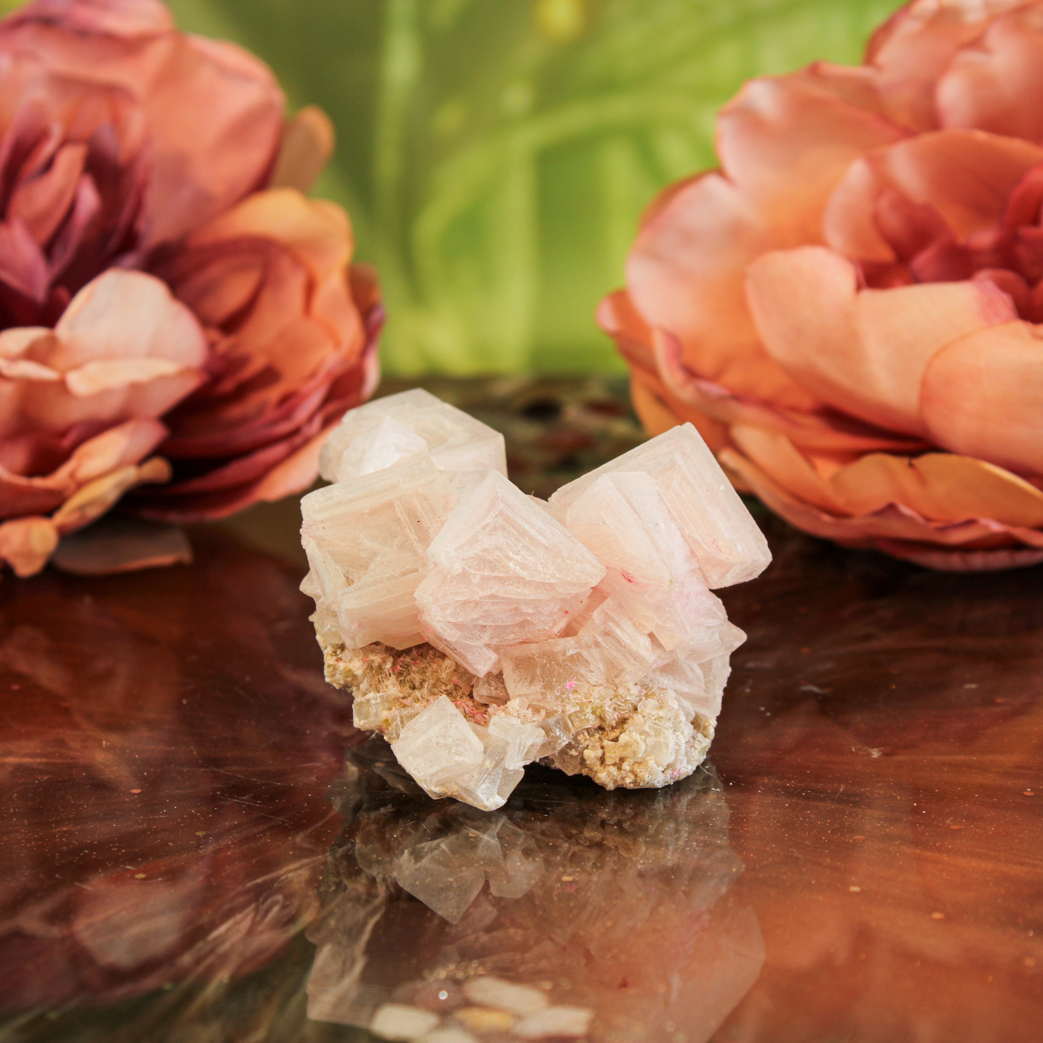 In het cluster zie je duidelijke kristalvormen en natuurlijke vlakken die door de natuur zelf zijn gevormd. De lichtroze kristallen hebben een zachte, poederachtige uitstraling die bij sommigen doet denken aan een suikerspin. Dat zorgt voor een rustige en verfijnde uitstraling. Elk haliet cluster is uniek in vorm en structuur, waardoor je altijd een bijzonder stuk natuur in huis haalt.