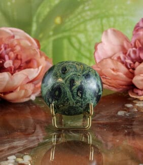 Ook als decoratief stuk heeft deze kambaba jaspis handsteen een rustige en natuurlijke uitstraling. De diepe groentinten en ronde patronen brengen een warme, aardse sfeer in je ruimte. Ze komt mooi tot haar recht op een schaaltje, op een plank of tussen andere edelstenen.