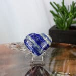 Lapis lazuli is een van de bekendste stenen om het hogere denken en de heldere vermogens te activeren. Spiritueel zet de steen de bovenste chakra’s open en verbindt ze met elkaar. De steen kan het intellectuele vermogen vergroten, zodat je beter kunt leren en onderwijzen. Ook heeft deze steen een heel bijzondere eigenschap: het opwekken en versterken van liefde voor onszelf en anderen. Daarom wordt deze steen in vele culturen gedragen als liefdes- of vriendschapssteen. Lapis lazuli betekent letterlijk ‘blauwe steen’. De Egyptenaren associeerden de donkerblauwe steen met de gespikkelde gouden pyrietdeeltjes met de nachtelijke sterrenhemel.