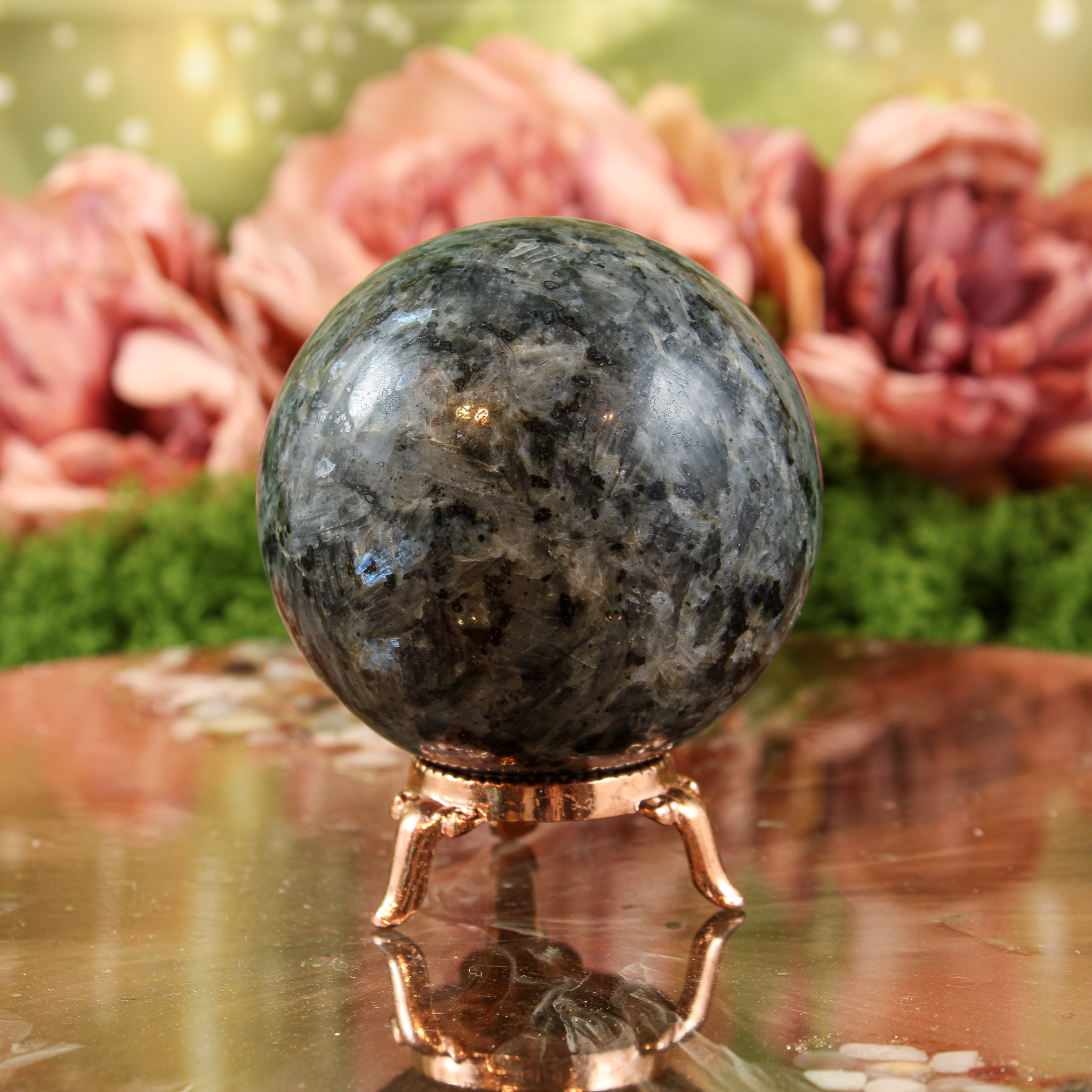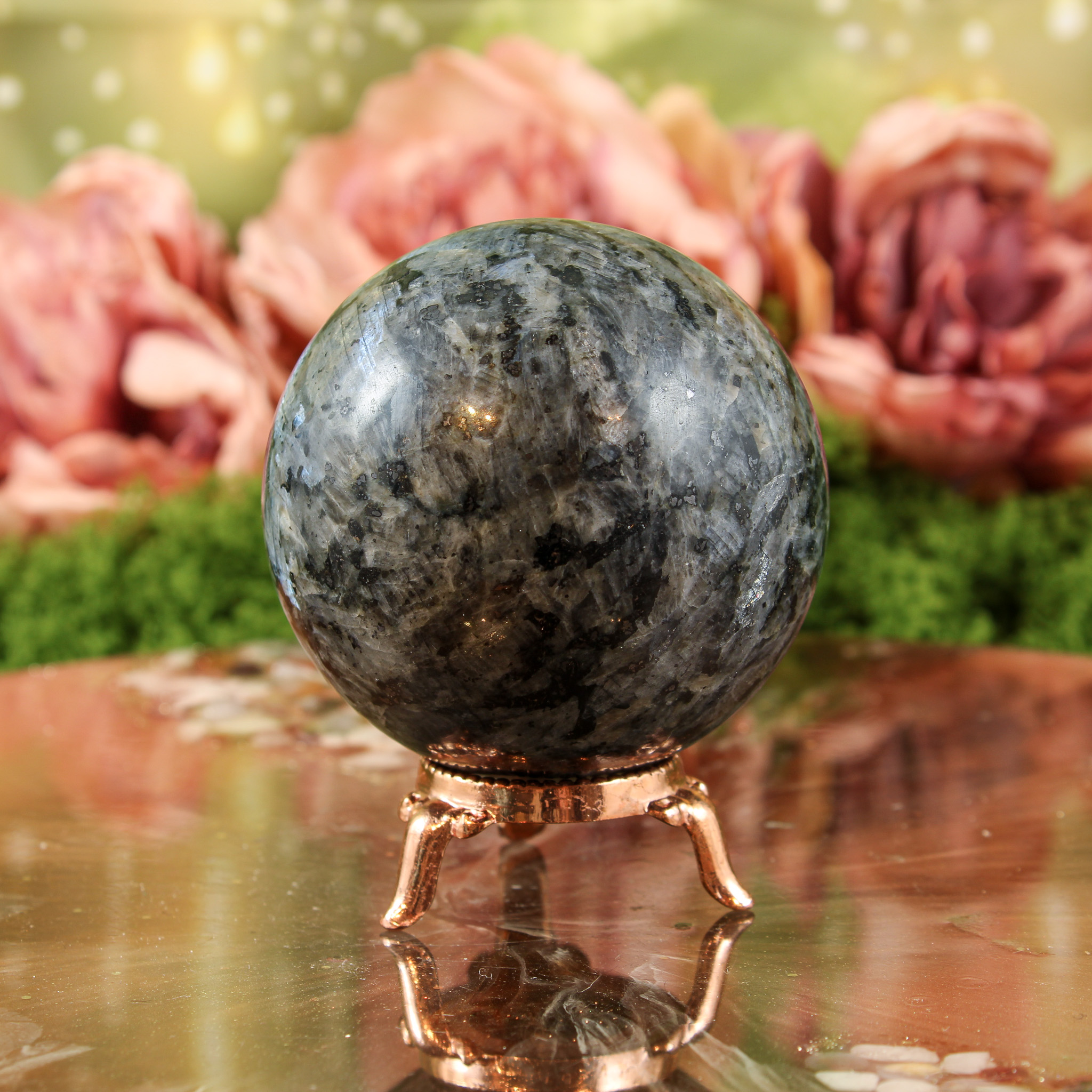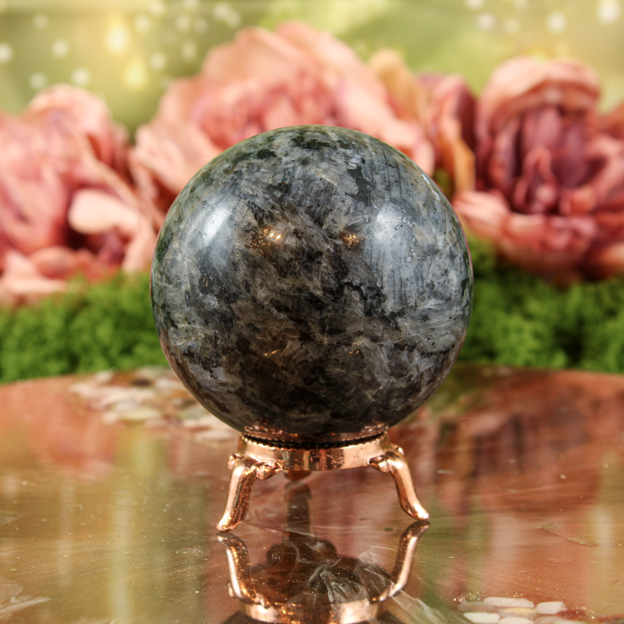 Met deze larvikiet bol haal je een mooi stuk natuur in huis. Ook breng je een rustige, beschermende energie in je omgeving die prettig en stabiel aanvoelt.