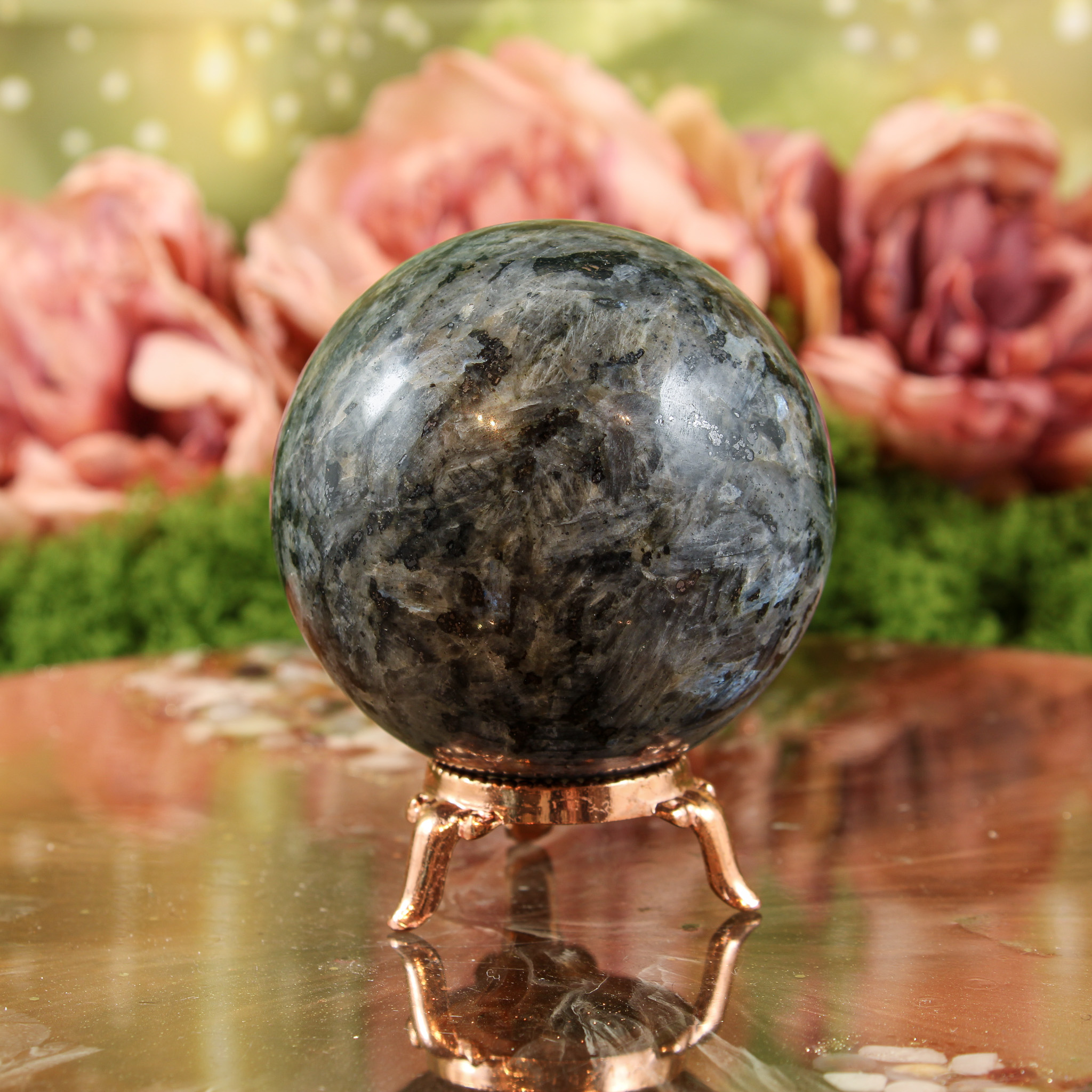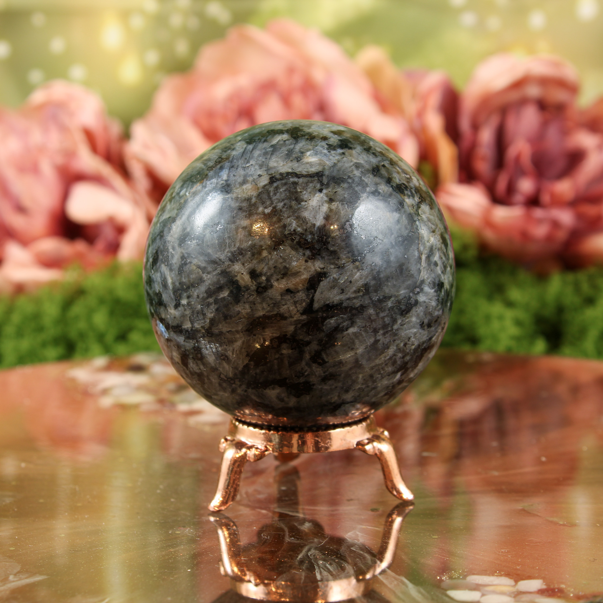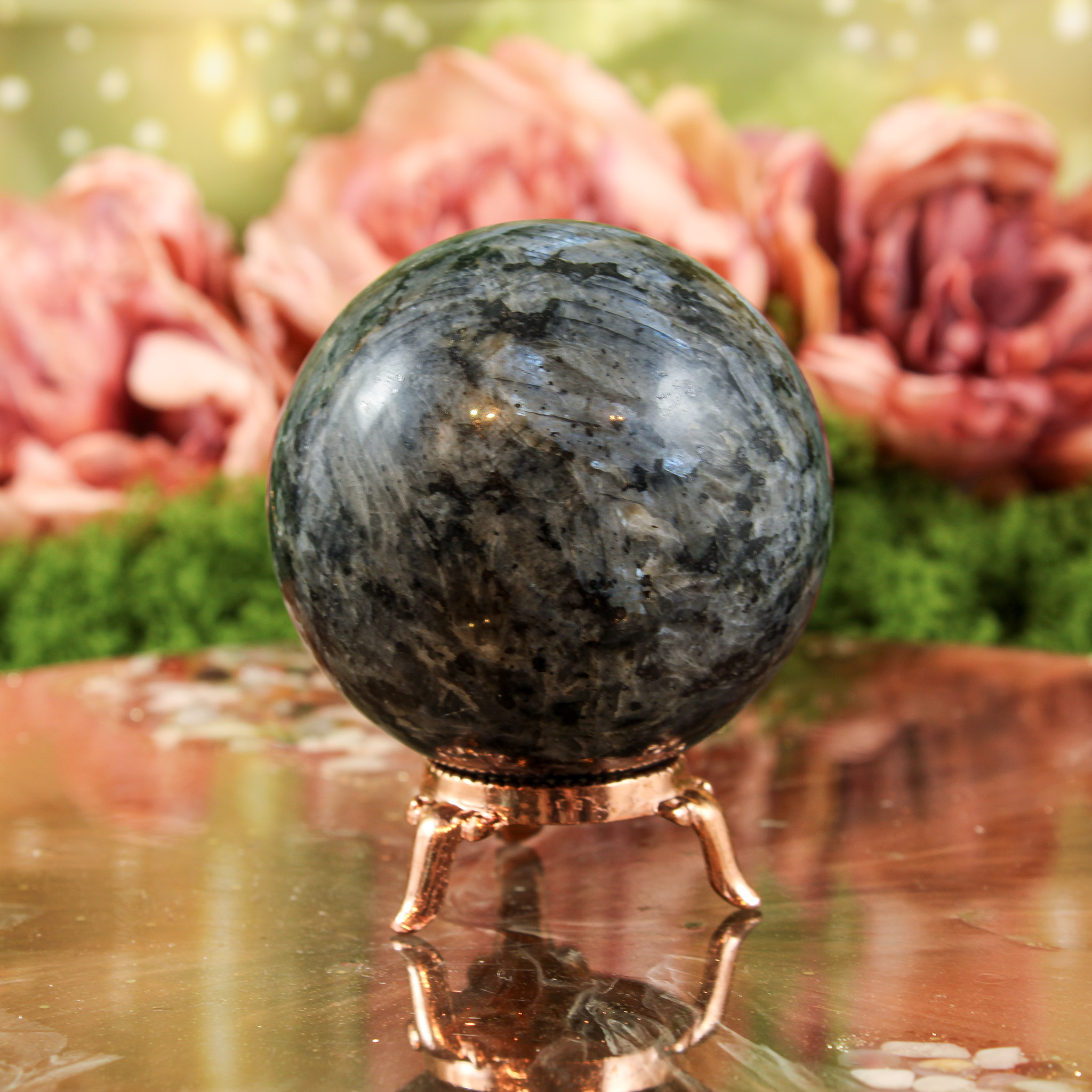 Met deze larvikiet bol haal je een mooi stuk natuur in huis. Ook breng je een rustige, beschermende energie in je omgeving die prettig en stabiel aanvoelt.