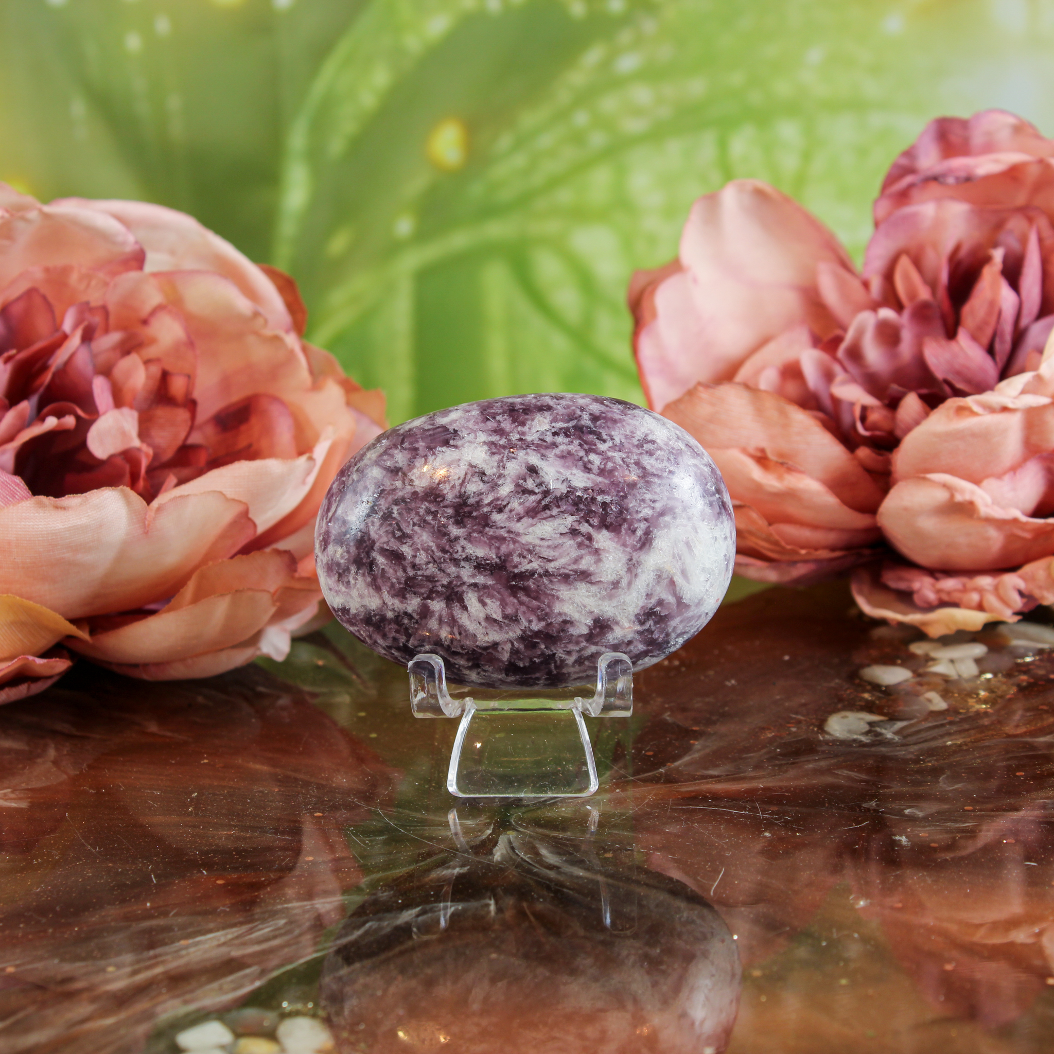 Veel mensen zien lepidoliet als een steen die rust en emotionele balans brengt. Ze komt goed van pas in periodes van stress of onrust en helpt je om met zachtheid te vertragen en weer contact te maken met je gevoel.
