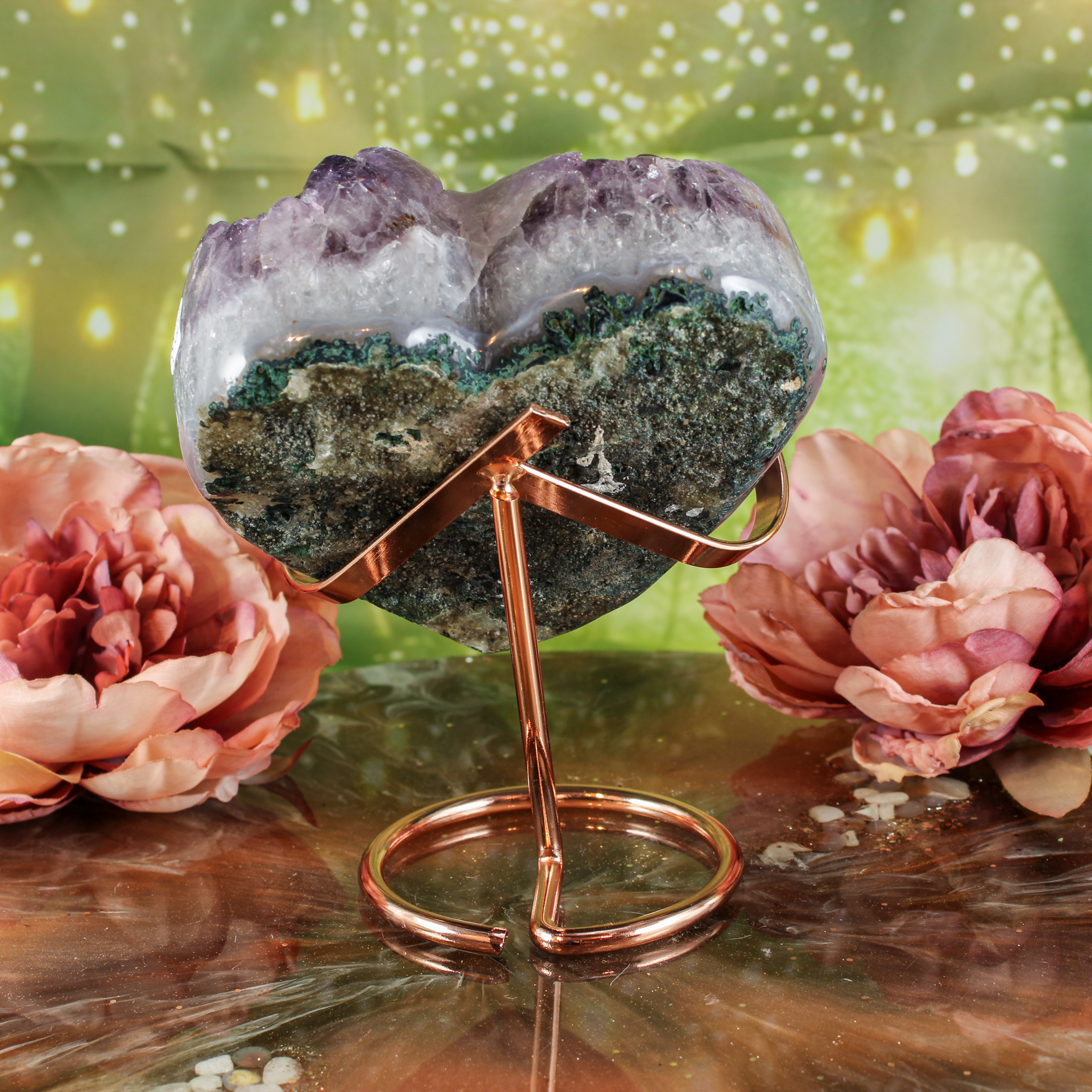 Deze metalen edelstenen standaard (rosé) maat L is een stijlvolle en praktische manier om jouw edelstenen zichtbaar neer te zetten. Met deze edelsteen houder geef je stenen een vaste plek in huis, terwijl ze stevig en stabiel ondersteund worden. Ideaal voor wie edelstenen niet ergens neer wil leggen, maar ze juist een mooie en opvallende plek wil geven in het interieur.