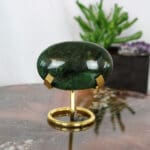 Nefriet jade heeft een reinigende en beschermende werking, vooral tegen negatieve invloeden van buitenaf. Nefriet jade helpt je beter bij jezelf te blijven, vooral als je in een situatie terechtkomt waarin mensen je onder druk zetten. Deze steen helpt bij het ontwikkelen van een neutrale houding en bij het verminderen van spanning en stress. Nefriet jade zorgt voor harmonie, evenwicht en trekt voorspoed, geluk en welvaart aan. Deze steen bevordert zelfrealisatie en zelfredzaamheid en helpt je bij het loslaten van irritaties en negatieve emoties. Nefriet jade helpt je bij het vinden van jouw doel in dit leven en zorgt ervoor dat je je prettig voelt in dit leven. Wanneer je een stukje nefriet jade in de buurt hebt als je slaapt, is de kans groter dat je je dromen onthoudt en hier boodschappen uit kunt halen. Tijdens een reis of vakantie is dit een goede steen om bij je te dragen voor wat extra bescherming. Op lichamelijk gebied werkt nefriet jade sterk reinigend en verwijdert gifstoffen uit het lichaam. Ook heeft deze steen een positieve werking op nieren en bijnieren, blaas, het zenuwstelsel, vruchtbaarheid en op het bevallen.