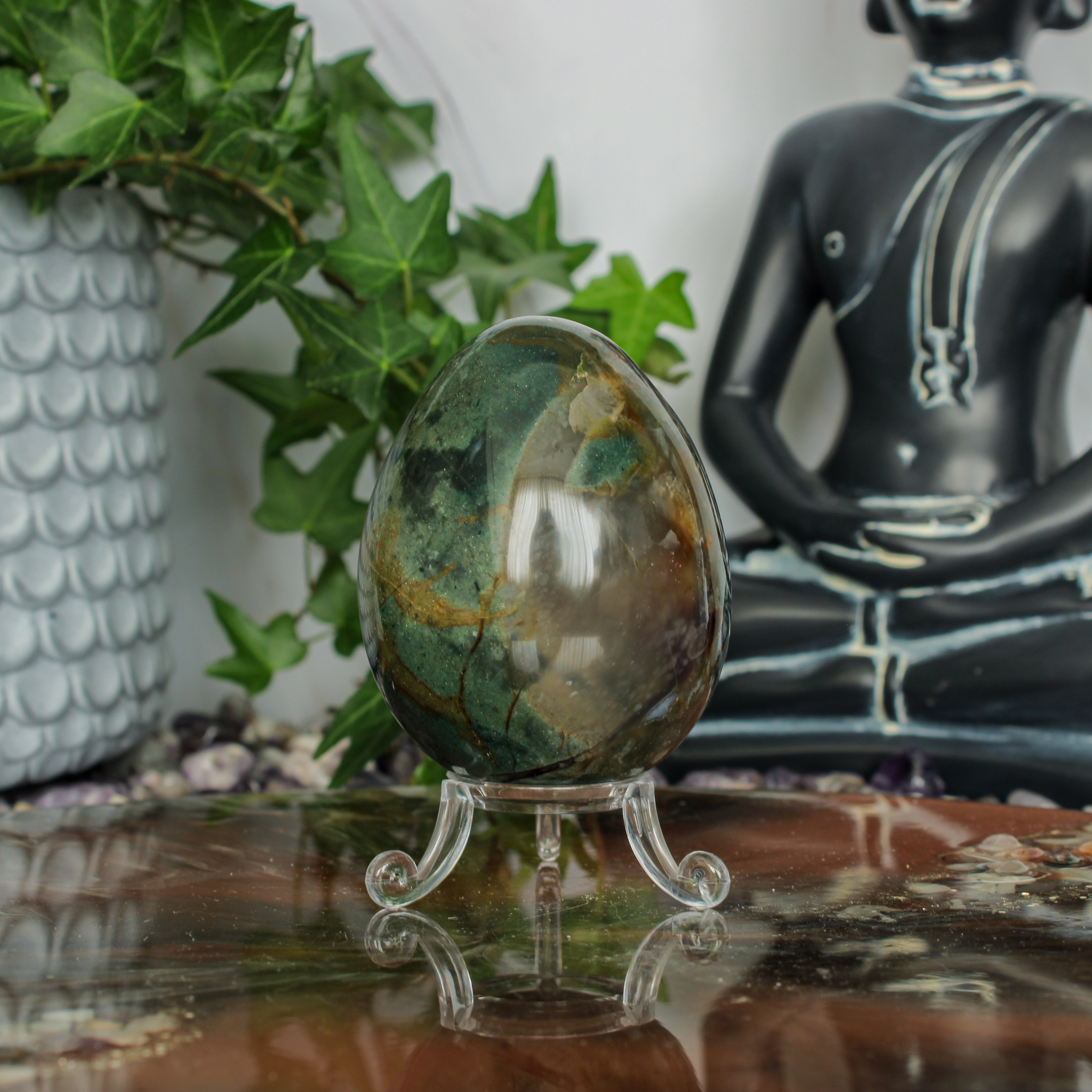 Doordat de steen volledig gepolijst is, zie je haar van alle kanten en komen de patronen steeds anders naar voren. Wanneer je het ei draait, ontdek je telkens nieuwe details.