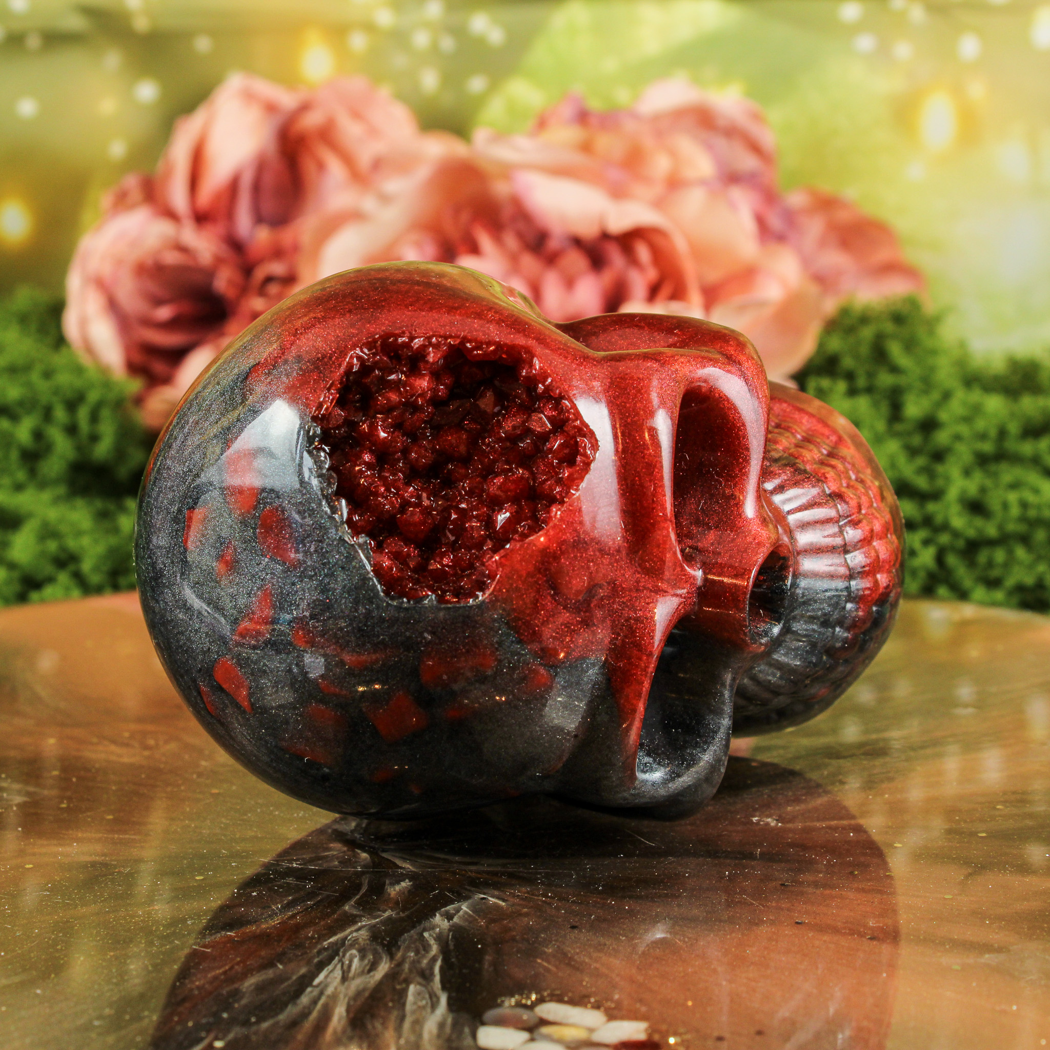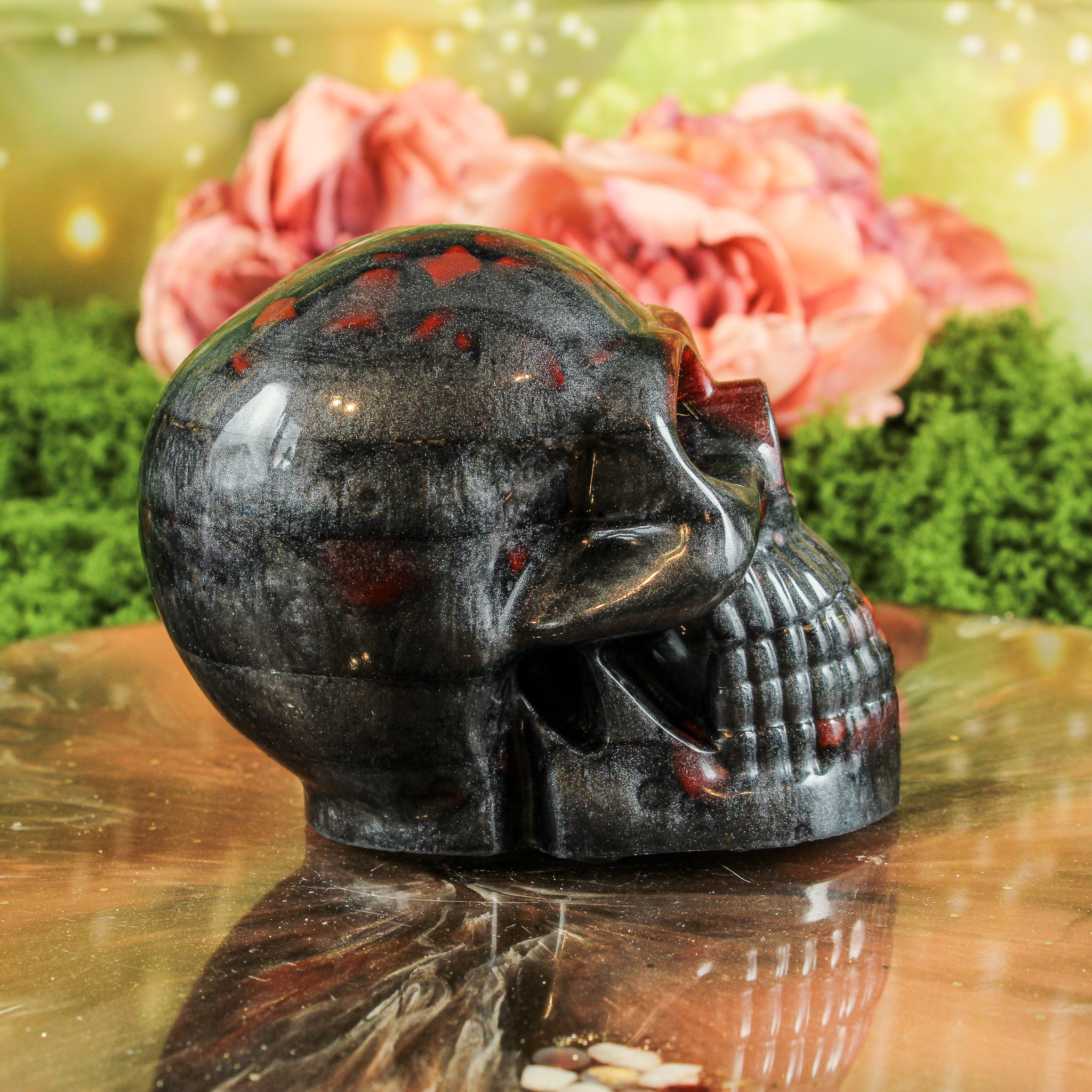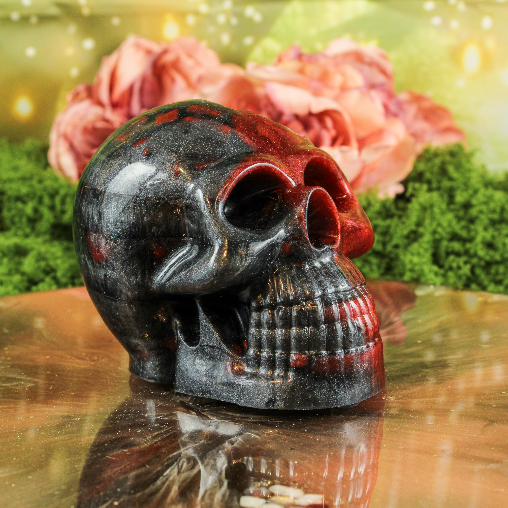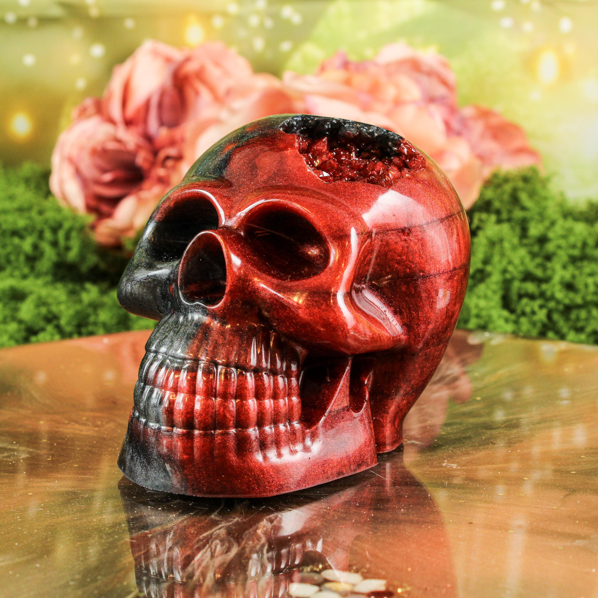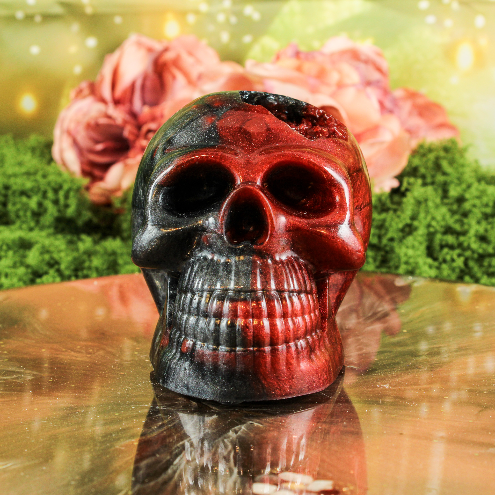 Met deze orgonite schedel haal je niet alleen een handgemaakt en betekenisvol stuk in huis, maar ook een warme energie die je ruimte op een zachte manier verrijkt.