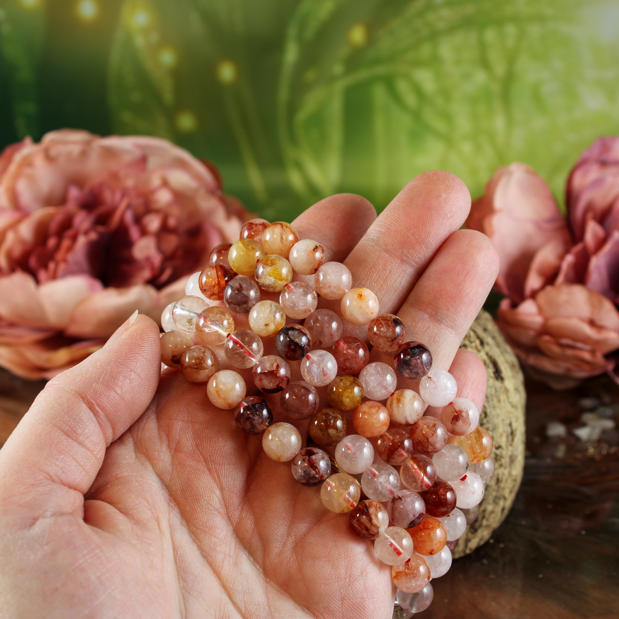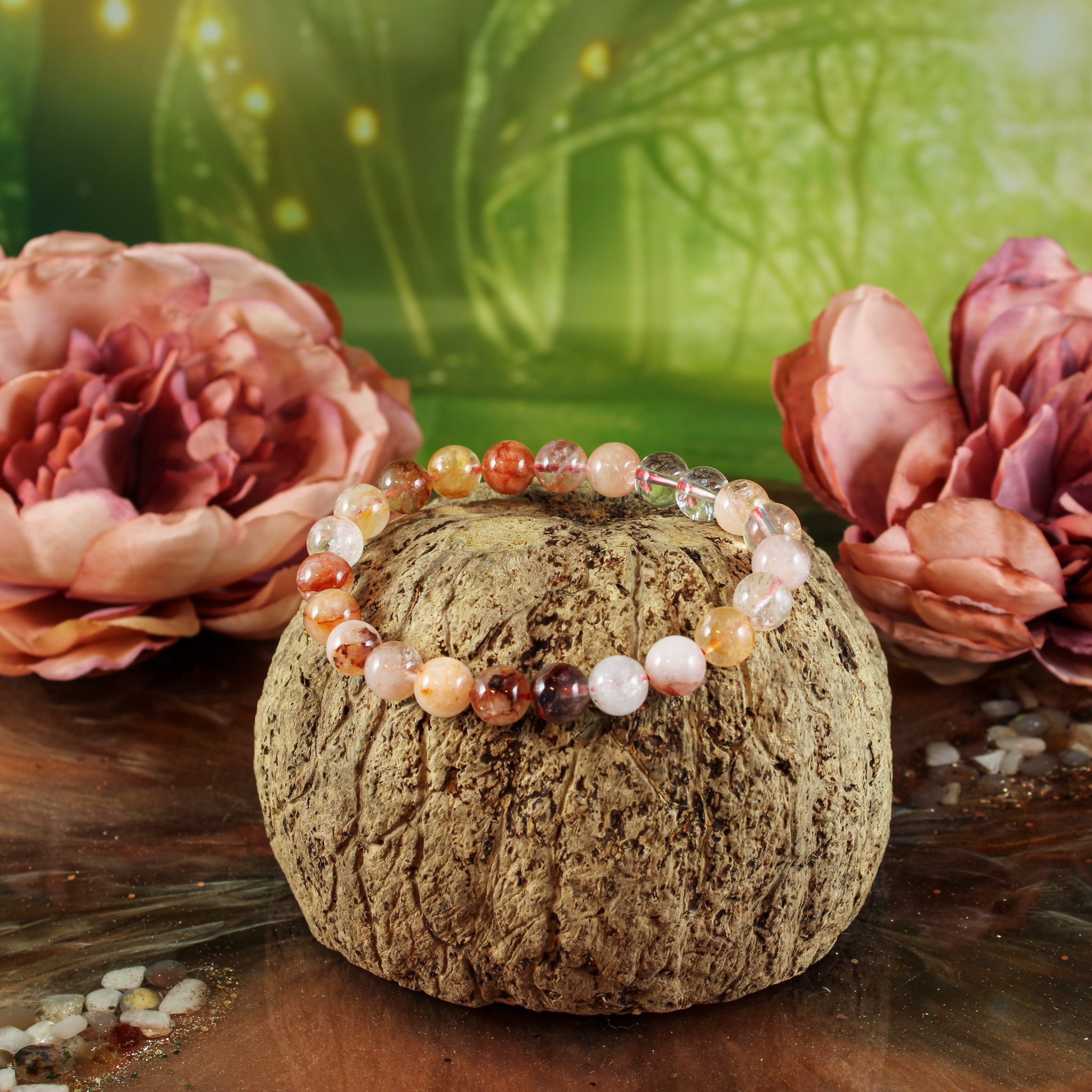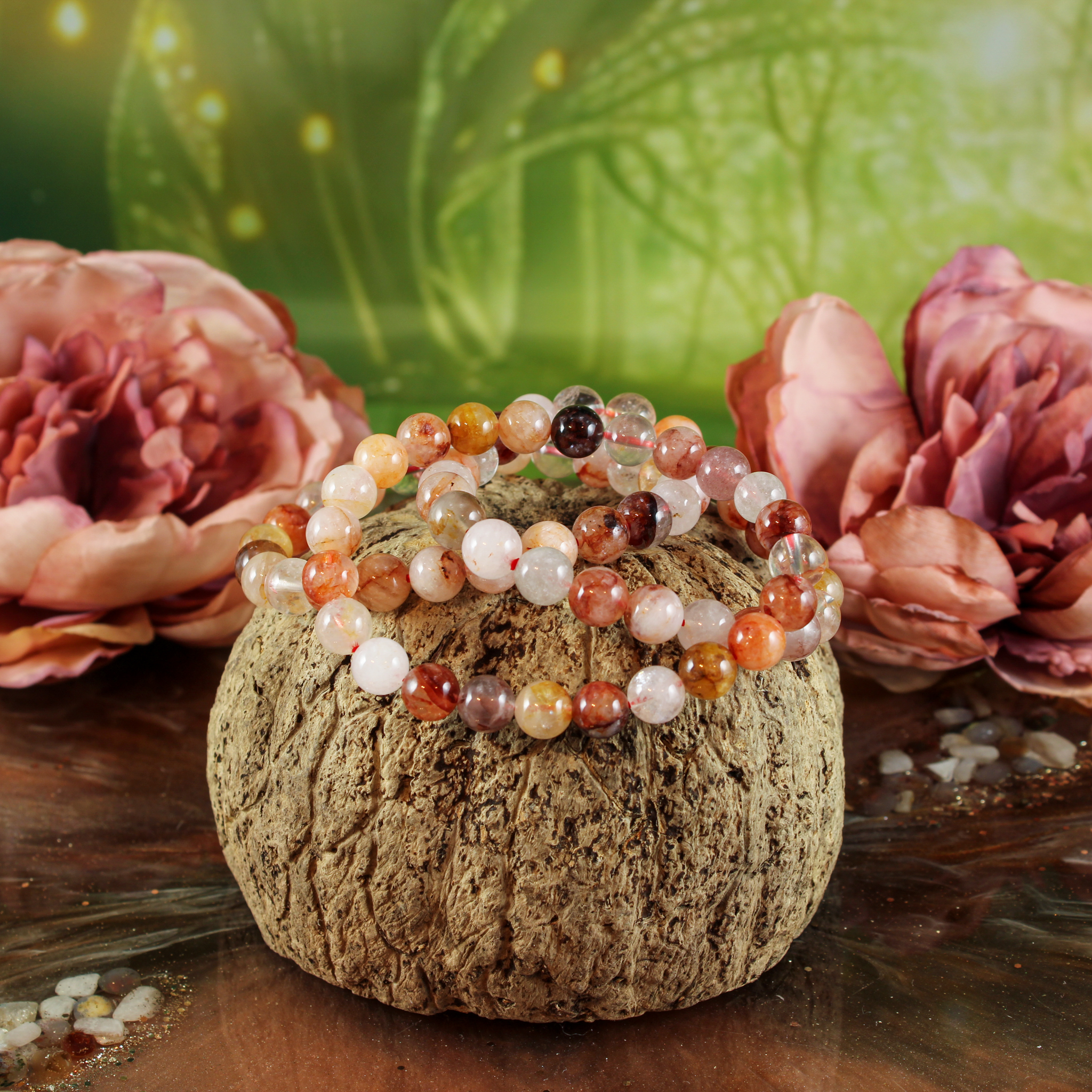 Deze red healer armband 8 mm is een bijzondere en stijlvolle armband met een warme, natuurlijke uitstraling. De kralen laten een mooie mix zien van zachte roodtinten en transparante stukken, met patronen die door de natuur zelf zijn gevormd. Red healer, ook wel hematoïde kwarts genoemd, is bergkristal met insluitsels van hematiet. Deze insluitsels geven de steen haar kenmerkende rode kleur en zorgen voor de levendige tekeningen in elke kraal. Geen kraal is precies hetzelfde, wat de armband een uniek en karaktervol geheel maakt.
