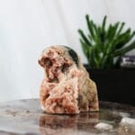 Deze roze amethist sculptuur heeft prachtige druzy openingen. De afmetingen zijn L 5,7 x B 4,9 x H 6,9 cm en weegt 190 gram.