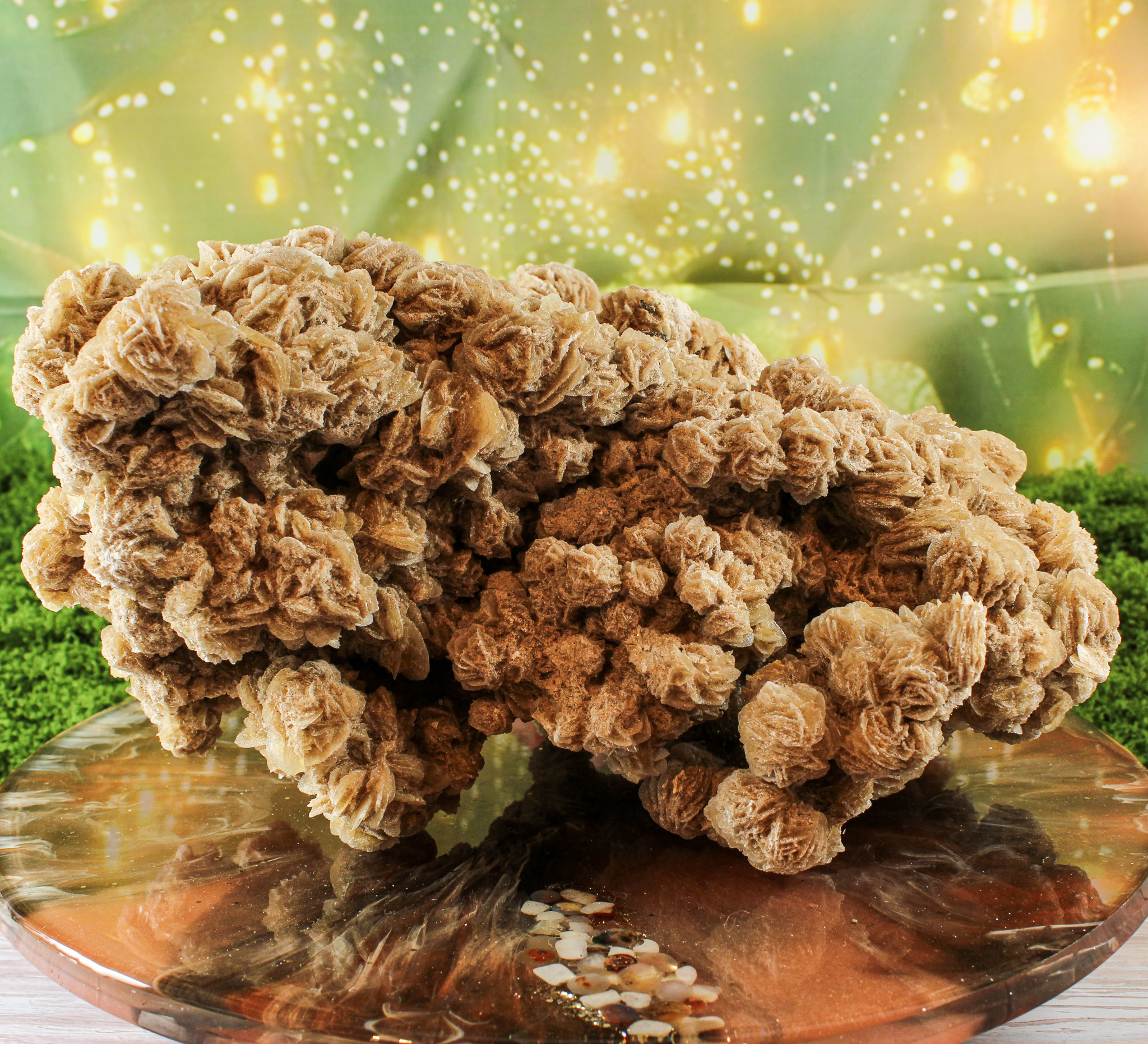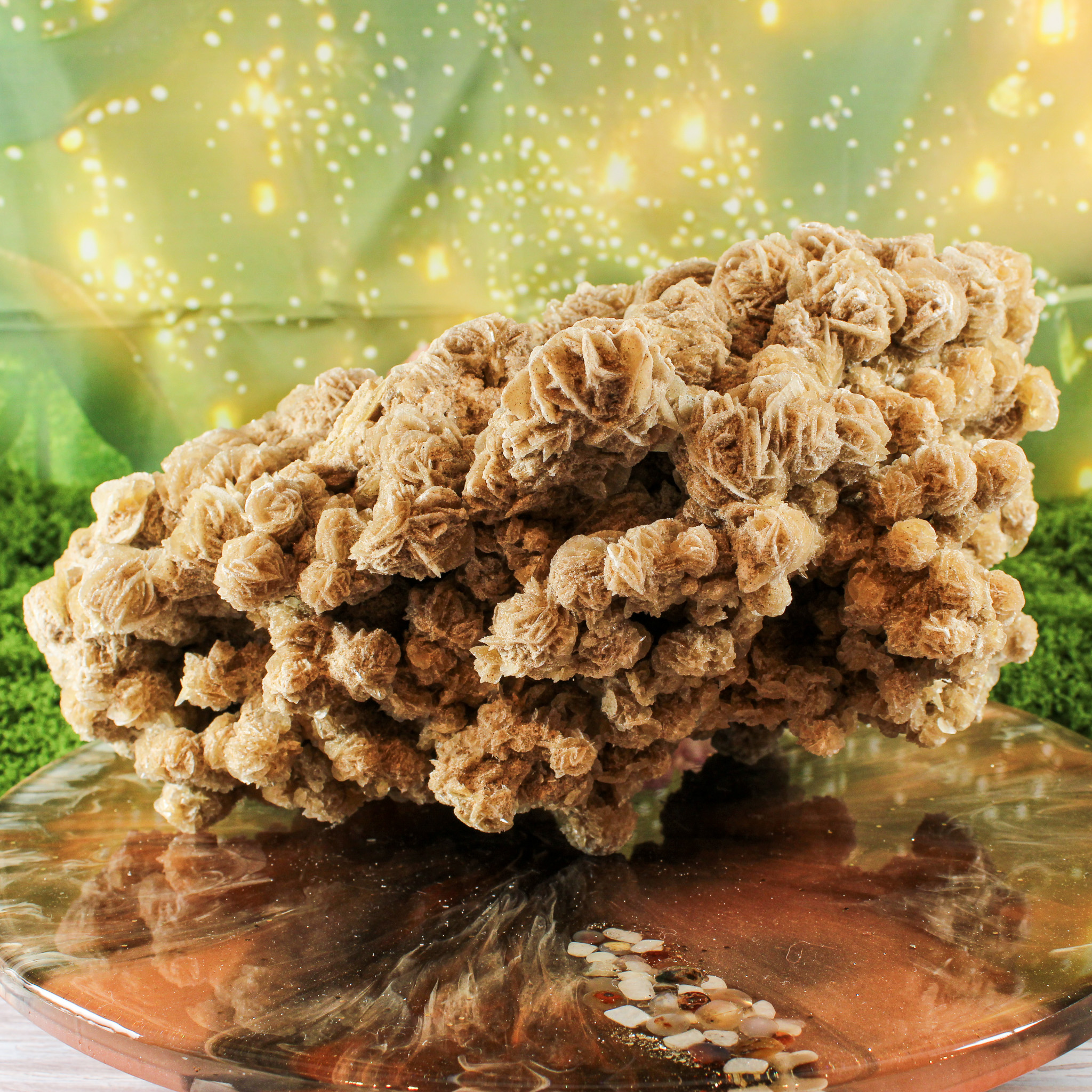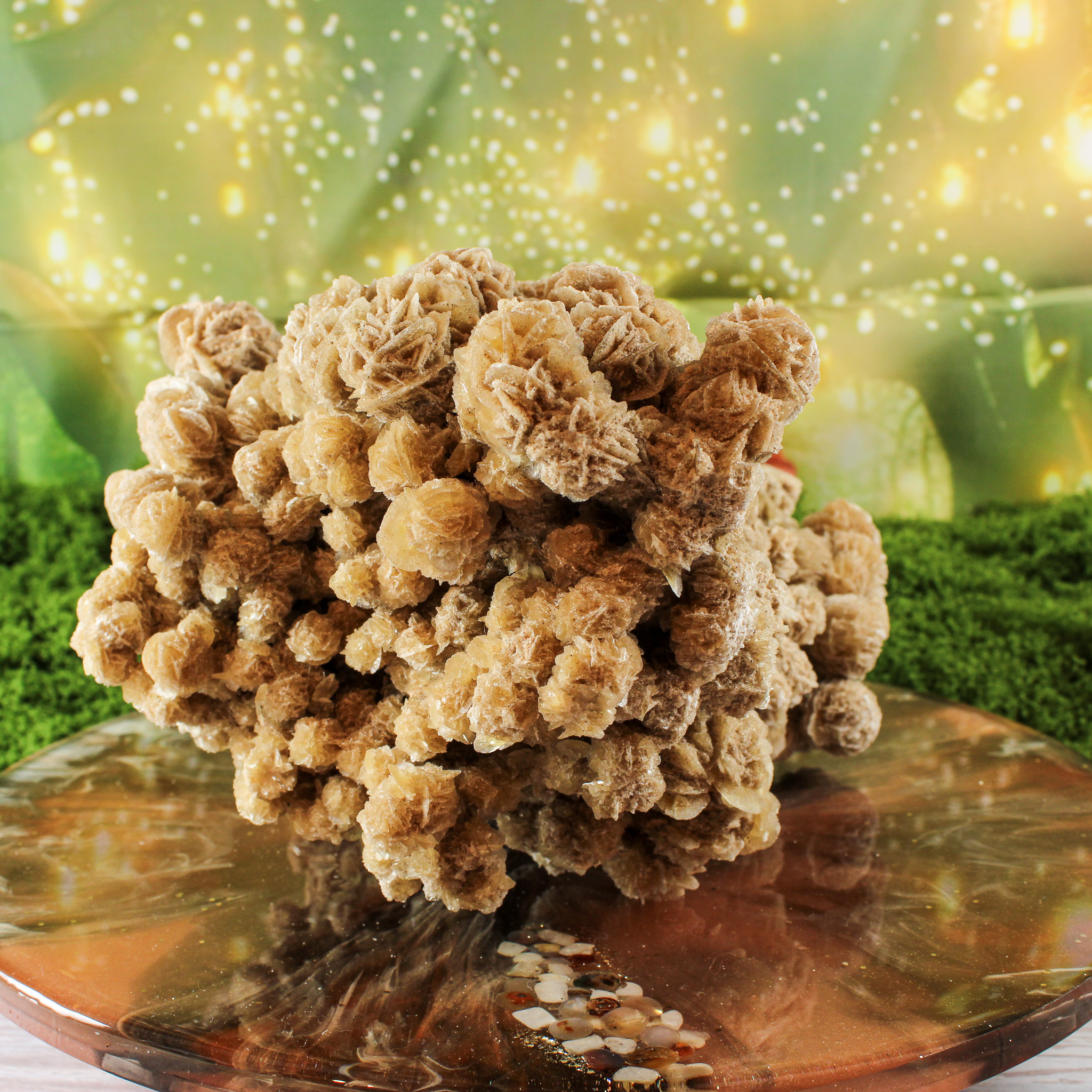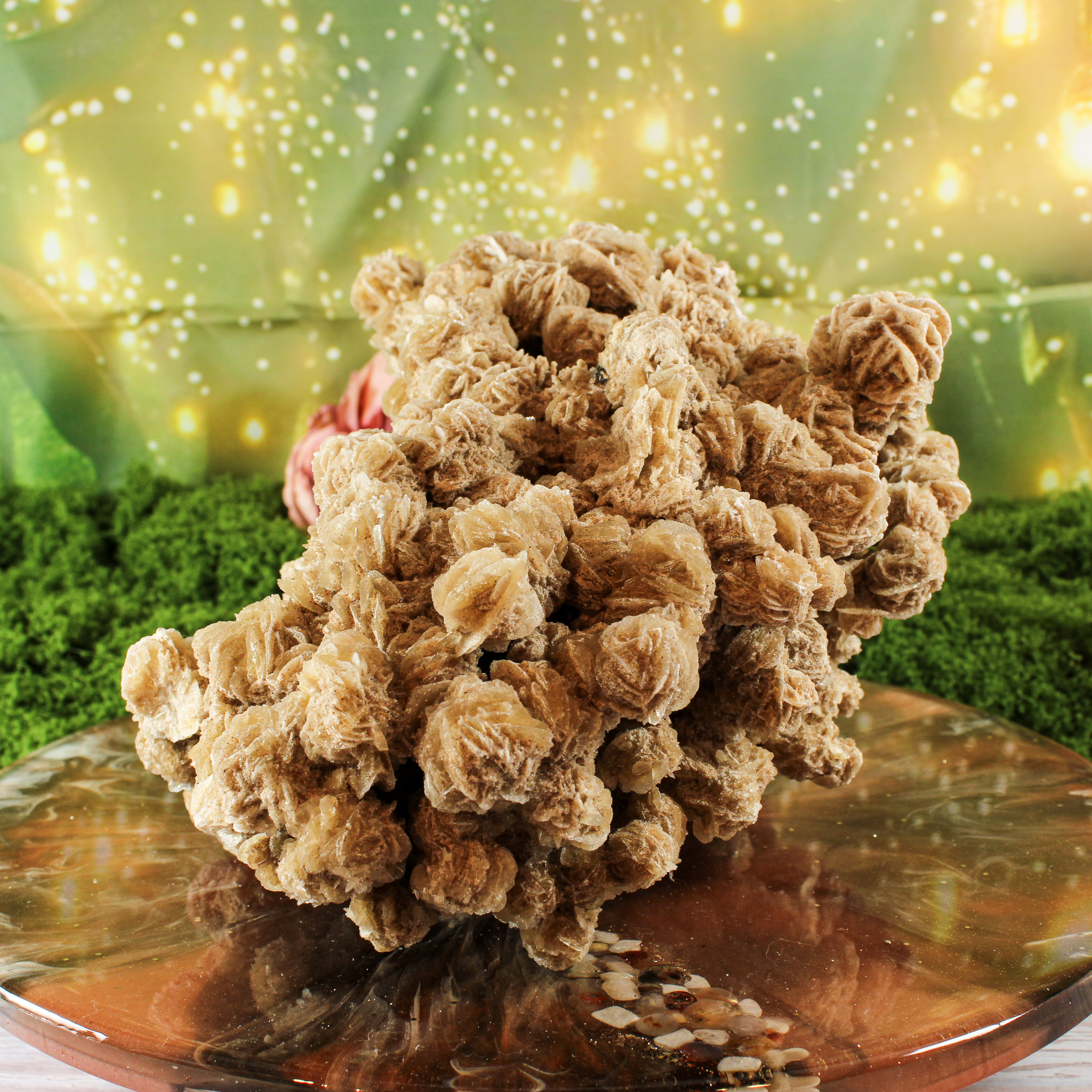 Waar je de woestijnroos ook neerzet, ze geeft de ruimte een speelse en rustige uitstraling. Zelfs zonder kennis van de werking van edelstenen is dit een decoratie die uitnodigt om te kijken, te voelen en even stil te staan.