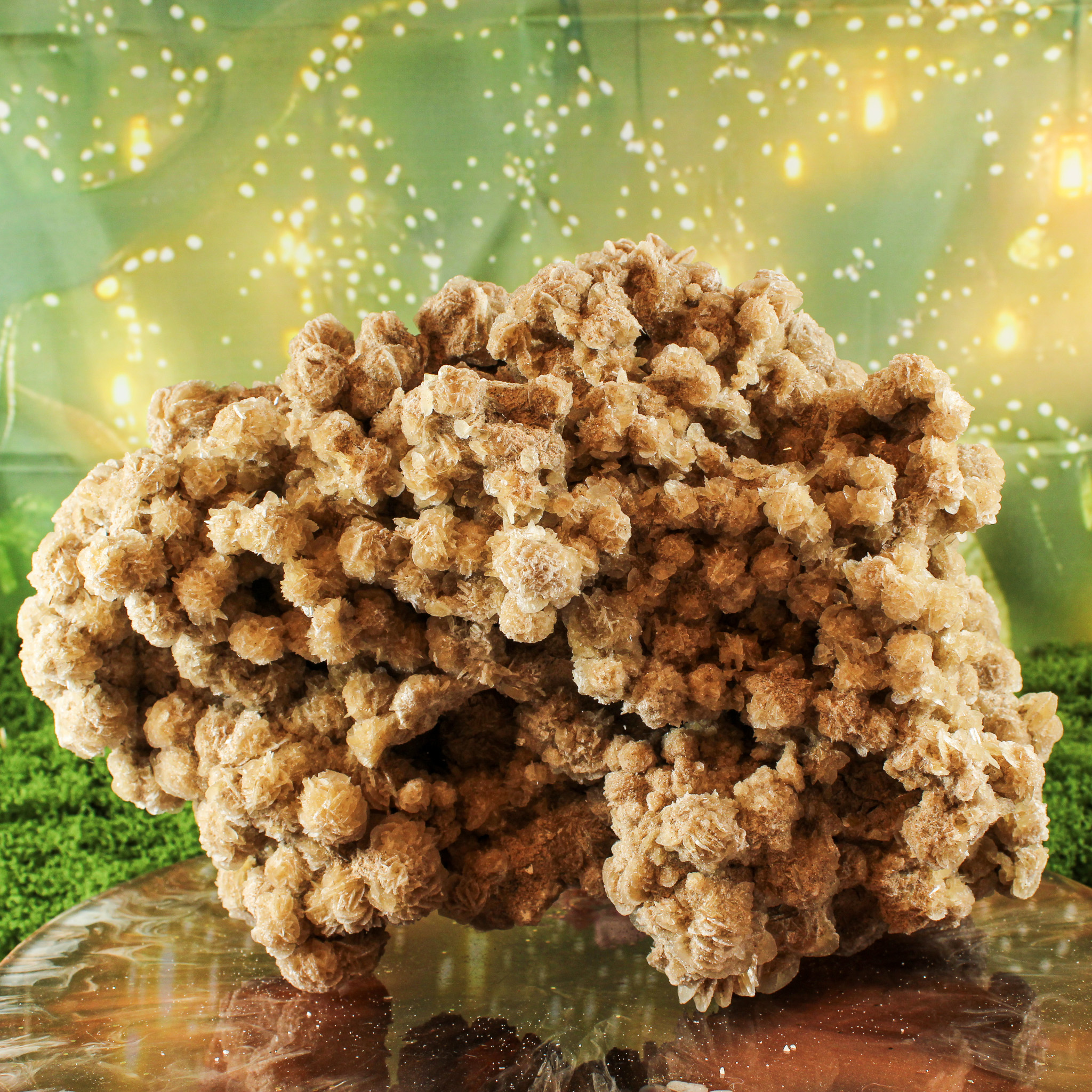 Deze grote, ruwe woestijnroos is een bijzonder natuurproduct dat direct de aandacht trekt. Het stuk bestaat uit lagen kristallen die samen een roosachtig patroon vormen. De natuur heeft elke ‘roos’ zelf gevormd uit zand, water en mineralen. Hierdoor is dit unieke geheel is ontstaan. De warme, zachte beige tinten en de gelaagde structuur geven de woestijnroos een speelse en tegelijk rustige uitstraling. Waardoor het stuk meteen vriendelijk oogt.